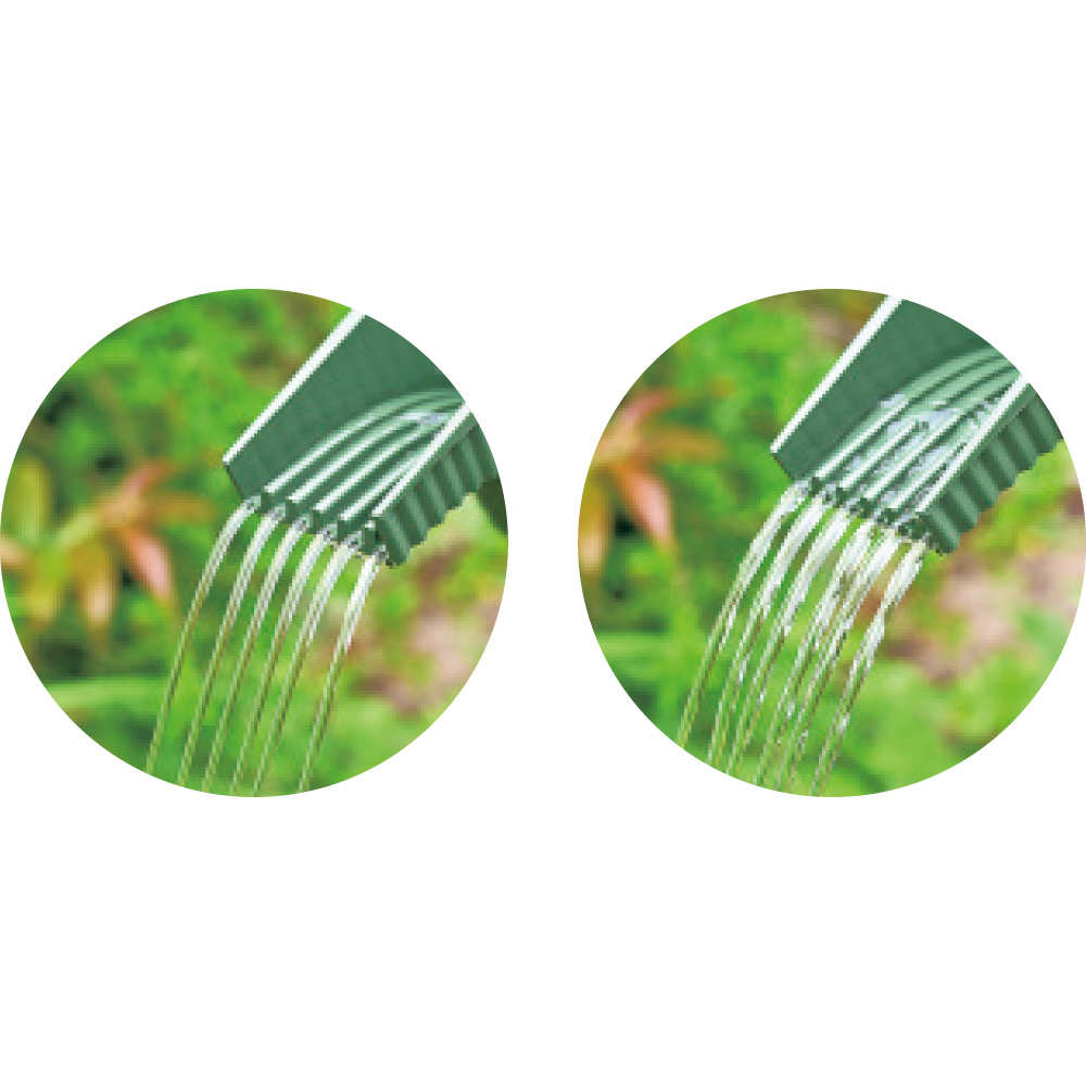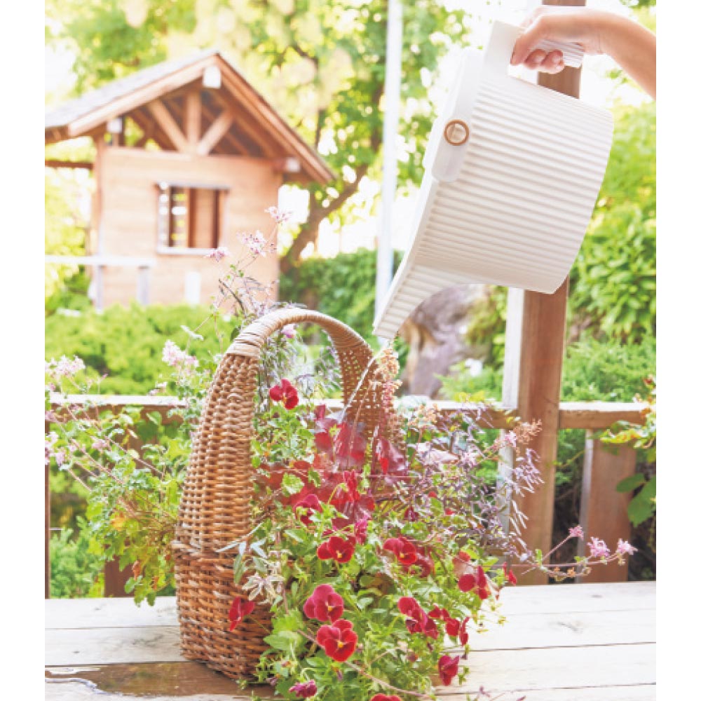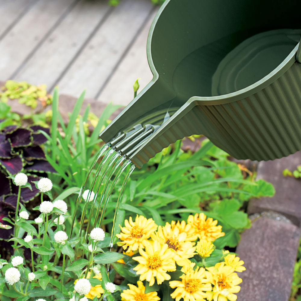 注ぎ口が分かれているので、植物にやさしくシャワー散水が可能!置いても吊り下げても可愛い、オブジェのようなジョウロです。◆ハンドルとグリップで散水しやすい設計に。手元で水量の調整がしやすく、やさしくシャワー散水できます。◆注ぎ口が分かれている。6本に分かれた注ぎ口で、お花を傷めず、植物の根元に水が届きやすい!◆便利な機能付き。・水を貯めやすいホースリング付き。・オープンタイプなのでスタッキングが可能。・液体肥料の希釈などに便利なメモリ付き。