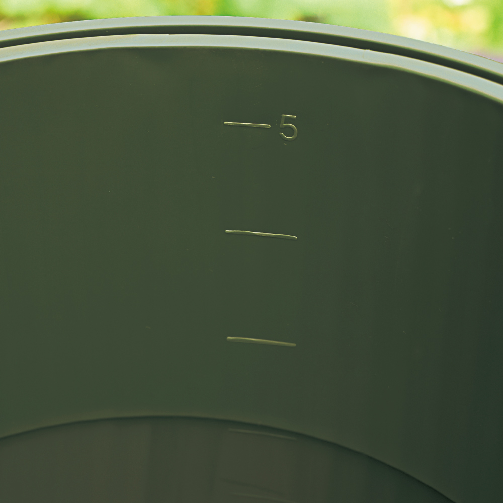 底の窪みと持ち手で、水が入ったジョウロも持ちやすい仕様。