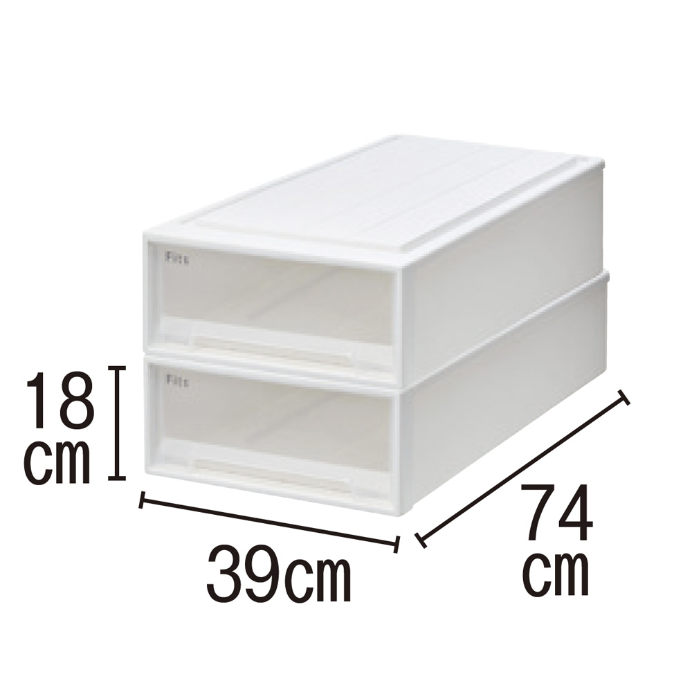 シリーズ累計販売数1億個を突破!フィッツケースには、選びたくなる、リピート買いしたくなる理由があります。豊富なサイズ展開と自在な組み合わせ方で、家中の空間にすっきりとフィット。手こずっていた収納も、フィッツケースがあれば楽しみに変わります。さまざまな空間にフィットする収納の定番衣装ケースの代名詞として長年愛される収納の定番「フィッツ」。dinosなら店頭から持ち帰る大変な手間は不要!欲しいサイズがすぐに見つかり、2個組で家まで届きます。引っ越しや模様替えの際に、1人でも手軽に組み直しできるフレキシビリティも魅力。ラクして便利な収納体験、フィッツケースで始めませんか。スペースと収納したいものに合わせて組み合わせできますクローゼットタイプ(奥行53cm)は9サイズ、押し入れタイプ(奥行74cm)は7サイズ、奥行47cmと45cmも各1サイズあり、多様なシーンに対応します。お好みのサイズをお選びください。【クローゼットタイプ】奥行53cmで、クローゼットにぴったり。ハンガー下の空きスペースを、たたんだ衣類の収納に有効活用できます。深すぎず、出し入れしやすい奥行で衣類や小物をスッキリ整理。【押し入れタイプ】奥行74cmで、押し入れの深さを活かせる大容量。奥行たっぷりだからかさばる厚手の服や、シーツや寝具カバーなどの収納にも大活躍。押し入れにそのまましまうと行方不明になりがちな小物類も、まとめて収納できて便利です。家の中のあらゆる場所で、さまざまなモノの収納に!●押し入れ・クローゼット・寝室などで:衣類収納に●キッチンで:キッチンツールや食品のストックにも●リビングで:さまざまな生活用品や防災用品などの収納に●ランドリーで:ハンガーなどの洗濯用品やタオルの収納に●玄関で:キャンプ用品、子どものスポーツ用品、シューズケアグッズに●子ども部屋で:衣類やおもちゃなど、おかたづけ習慣のファーストステップにも洗練された収納空間でお部屋をイメージアップ機能的にすぐれた収納ツールでありながら、インテリア性にも秀でたところが魅力。凹凸の少ないシンプルデザインに、前面は高級感のある半透明のすりガラス調を採用しました。うっすら透けて見えるため、収納物も一目瞭然です。さりげなくロゴ入り前枠上部に「Fits」のロゴを印字。買い足しをする際、どんな収納ケースを購入したか把握できます。使いやすさと強さのための安心構造●スタッキングOKレールと溝がしっかりかみ合う構造により、重ねたときのぐらつきや滑りがありません。●丈夫な前枠付きたくさん収納してもたわみにくく、ケースを積み重ねたときに上段の重みで下段が引き出せないストレスも解消されます。●引き出しの飛び出しを防止クローゼットタイプ幅44cmは引き出しの飛び出しを防ぐ「引き出しロック機能」付きです。●キャスター対応掃除や模様替えの際の移動に便利なネジ式キャスター(幅39cm奥行74cmタイプ以外の押し入れタイプに対応)と差込式キャスター(クローゼットタイプとフィッツケースマルチに対応)も別売りでご用意。キャスター使用時は高さが約5cmアップします。サステナビリティへの取り組み本体素材のポロプロピレンには再生材を10%以上使用しています。シリーズ商品のご案内フィッツケースは以下のシリーズ商品がございます。※このページは押し入れタイプ奥行74cmの販売ページです。・クローゼットタイプ奥行53cm・押し入れタイプ奥行74cm・サイズいろいろ奥行47cm・45cm・フィッツケースマルチ奥行40cm