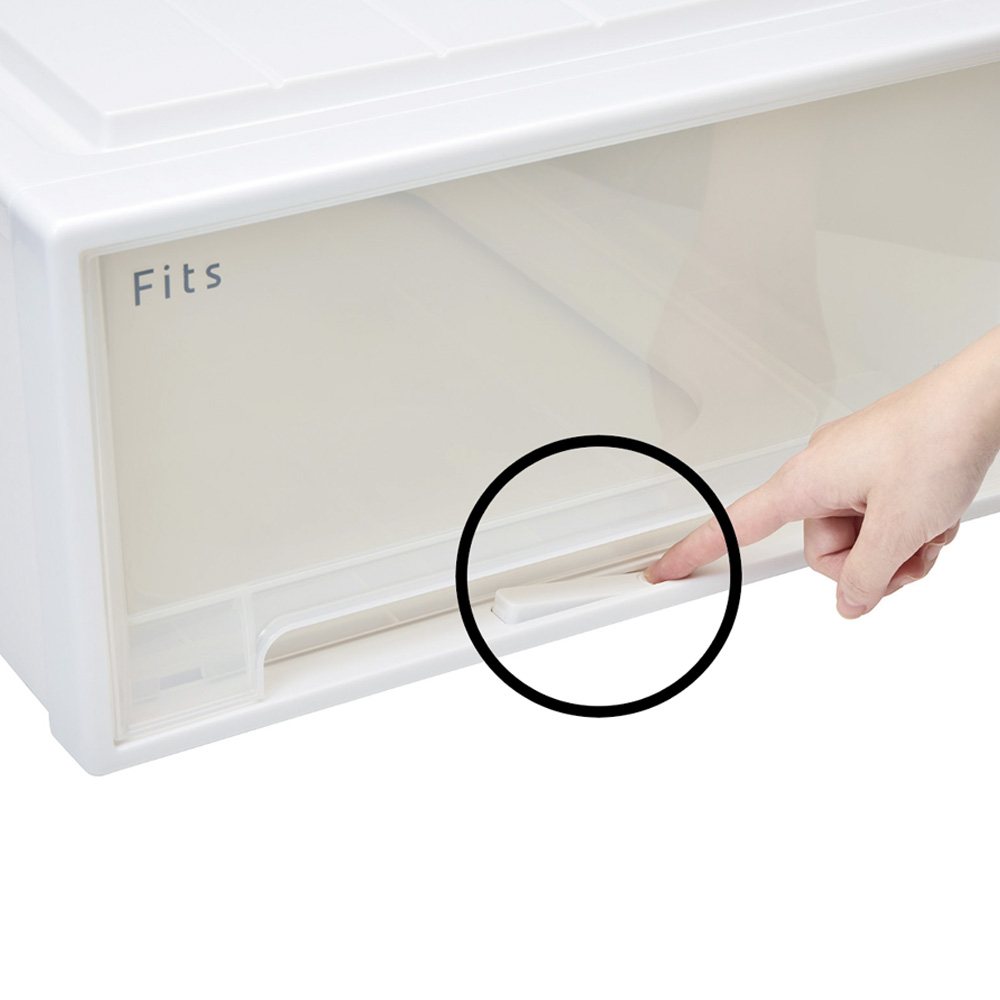 【ロゴ】前面上部に「Fits」のロゴを印字。買い足しをする際、どんな収納ケースを購入したか把握できます。