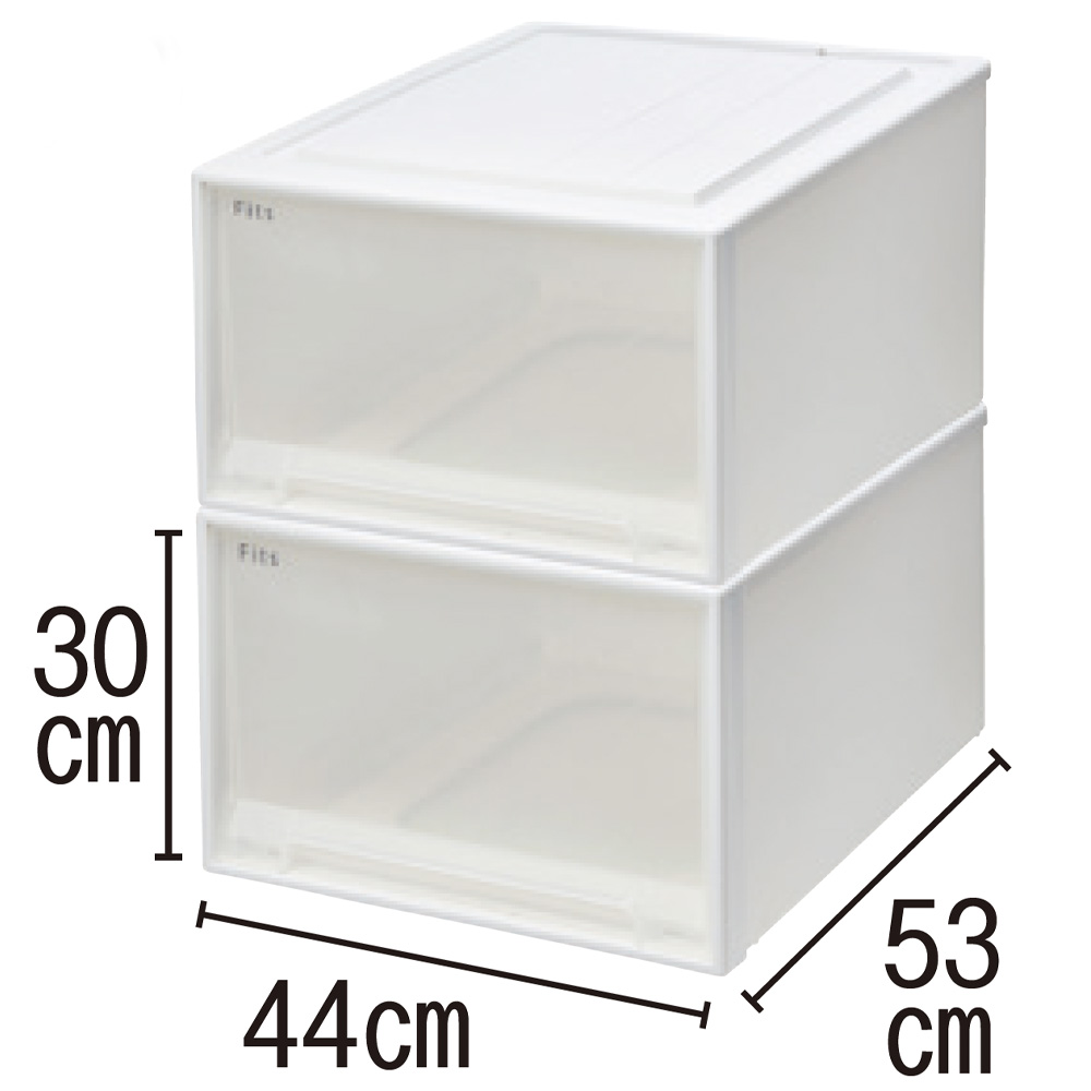 シリーズ累計販売数1億個を突破!フィッツケースには、選びたくなる、リピート買いしたくなる理由があります。豊富なサイズ展開と自在な組み合わせ方で、家中の空間にすっきりとフィット。手こずっていた収納も、フィッツケースがあれば楽しみに変わります。さまざまな空間にフィットする収納の定番衣装ケースの代名詞として長年愛される収納の定番「フィッツ」。dinosなら店頭から持ち帰る大変な手間は不要!欲しいサイズがすぐに見つかり、2個組で家まで届きます。引っ越しや模様替えの際に、1人でも手軽に組み直しできるフレキシビリティも魅力。ラクして便利な収納体験、フィッツケースで始めませんか。スペースと収納したいものに合わせて組み合わせできますクローゼットタイプ(奥行53cm)は9サイズ、押し入れタイプ(奥行74cm)は7サイズ、奥行47cmと45cmも各1サイズあり、多様なシーンに対応します。お好みのサイズをお選びください。【クローゼットタイプ】奥行53cmで、クローゼットにぴったり。ハンガー下の空きスペースを、たたんだ衣類の収納に有効活用できます。深すぎず、出し入れしやすい奥行で衣類や小物をスッキリ整理。引き出しの飛び出しを防ぐ「引き出しロック機能」付き(幅44cmタイプのみ)です。【押し入れタイプ】奥行74cmで、押し入れの深さを活かせる大容量。奥行たっぷりだからかさばる厚手の服や、シーツや寝具カバーなどの収納にも大活躍。押し入れにそのまましまうと行方不明になりがちな小物類も、まとめて収納できて便利です。家の中のあらゆる場所で、さまざまなモノの収納に!●押し入れ・クローゼット・寝室などで:衣類収納に●キッチンで:キッチンツールや食品のストックにも●リビングで:さまざまな生活用品や防災用品などの収納に●ランドリーで:ハンガーなどの洗濯用品やタオルの収納に●玄関で:キャンプ用品、子どものスポーツ用品、シューズケアグッズに●子ども部屋で:衣類やおもちゃなど、おかたづけ習慣のファーストステップにも洗練された収納空間でお部屋をイメージアップ機能的にすぐれた収納ツールでありながら、インテリア性にも秀でたところが魅力。凹凸の少ないシンプルデザインに、前面は高級感のある半透明のすりガラス調を採用しました。うっすら透けて見えるため、収納物も一目瞭然です。さりげなくロゴ入り前枠上部に「Fits」のロゴを印字。買い足しをする際、どんな収納ケースを購入したか把握できます。使いやすさと強さのための安心構造●スタッキングOKレールと溝がしっかりかみ合う構造により、重ねたときのぐらつきや滑りがありません。●丈夫な前枠付きたくさん収納してもたわみにくく、ケースを積み重ねたときに上段の重みで下段が引き出せないストレスも解消されます。●引き出しの飛び出しを防止クローゼットタイプ幅44cmは引き出しの飛び出しを防ぐ「引き出しロック機能」付きです。●キャスター対応掃除や模様替えの際の移動に便利なネジ式キャスター(幅39cm奥行74cmタイプ以外の押し入れタイプに対応)と差込式キャスター(クローゼットタイプとフィッツケースマルチに対応)も別売りでご用意。キャスター使用時は高さが約5cmアップします。サステナビリティへの取り組み本体素材のポロプロピレンには再生材を10%以上使用しています。シリーズ商品のご案内フィッツケースは以下のシリーズ商品がございます。※このページはクローゼットタイプ奥行53cmの販売ページです。・クローゼットタイプ奥行53cm・押し入れタイプ奥行74cm・サイズいろいろ奥行47cm・45cm・フィッツケースマルチ奥行40cm