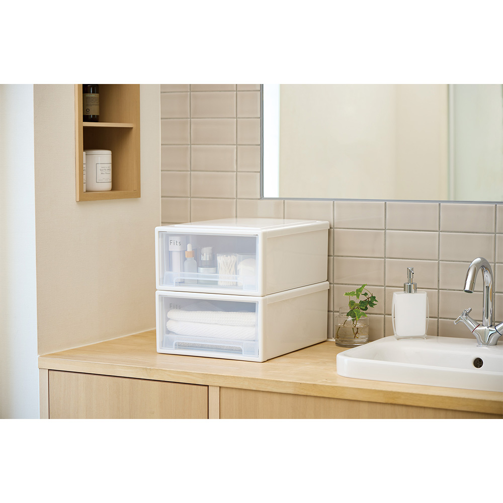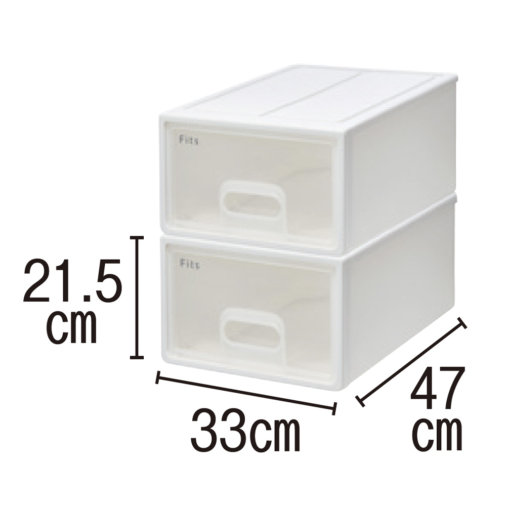 シリーズ累計販売数1億個を突破!フィッツケースには、選びたくなる、リピート買いしたくなる理由があります。豊富なサイズ展開と自在な組み合わせ方で、家中の空間にすっきりとフィット。手こずっていた収納も、フィッツケースがあれば楽しみに変わります。さまざまな空間にフィットする収納の定番衣装ケースの代名詞として長年愛される収納の定番「フィッツ」。dinosなら店頭から持ち帰る大変な手間は不要!欲しいサイズがすぐに見つかり、2個組で家まで届きます。引っ越しや模様替えの際に、1人でも手軽に組み直しできるフレキシビリティも魅力。ラクして便利な収納体験、フィッツケースで始めませんか。スペースと収納したいものに合わせて組み合わせできますクローゼットタイプ(奥行53cm)は9サイズ、押し入れタイプ(奥行74cm)は7サイズ、奥行47cmと45cmも各1サイズあり、多様なシーンに対応します。お好みのサイズをお選びください。【クローゼットタイプ】奥行53cmで、クローゼットにぴったり。ハンガー下の空きスペースを、たたんだ衣類の収納に有効活用できます。深すぎず、出し入れしやすい奥行で衣類や小物をスッキリ整理。【押し入れタイプ】奥行74cmで、押し入れの深さを活かせる大容量。奥行たっぷりだからかさばる厚手の服や、シーツや寝具カバーなどの収納にも大活躍。押し入れにそのまましまうと行方不明になりがちな小物類も、まとめて収納できて便利です。家の中のあらゆる場所で、さまざまなモノの収納に!●押し入れ・クローゼット・寝室などで:衣類収納に●キッチンで:キッチンツールや食品のストックにも●リビングで:さまざまな生活用品や防災用品などの収納に●ランドリーで:ハンガーなどの洗濯用品やタオルの収納に●玄関で:キャンプ用品、子どものスポーツ用品、シューズケアグッズに●子ども部屋で:衣類やおもちゃなど、おかたづけ習慣のファーストステップにも洗練された収納空間でお部屋をイメージアップ機能的にすぐれた収納ツールでありながら、インテリア性にも秀でたところが魅力。凹凸の少ないシンプルデザインに、前面は高級感のある半透明のすりガラス調を採用しました。うっすら透けて見えるため、収納物も一目瞭然です。さりげなくロゴ入り前枠上部に「Fits」のロゴを印字。買い足しをする際、どんな収納ケースを購入したか把握できます。使いやすさと強さのための安心構造●スタッキングOKレールと溝がしっかりかみ合う構造により、重ねたときのぐらつきや滑りがありません。●丈夫な前枠付きたくさん収納してもたわみにくく、ケースを積み重ねたときに上段の重みで下段が引き出せないストレスも解消されます。●引き出しの飛び出しを防止クローゼットタイプ幅44cmは引き出しの飛び出しを防ぐ「引き出しロック機能」付きです。●キャスター対応掃除や模様替えの際の移動に便利なネジ式キャスター(幅39cm奥行74cmタイプ以外の押し入れタイプに対応)と差込式キャスター(クローゼットタイプとフィッツケースマルチに対応)も別売りでご用意。キャスター使用時は高さが約5cmアップします。サステナビリティへの取り組み本体素材のポロプロピレンには再生材を10%以上使用しています。シリーズ商品のご案内フィッツケースは以下のシリーズ商品がございます。※このページはサイズいろいろ奥行47cmの販売ページです。・クローゼットタイプ奥行53cm・押し入れタイプ奥行74cm・サイズいろいろ奥行47cm・45cm・フィッツケースマルチ奥行40cm