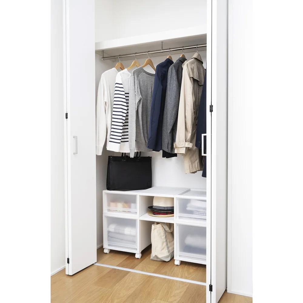 • 【組み合せ例】クローゼットに。 ※写真は別売りの連結棚と専用差込キャスターを使用しています。