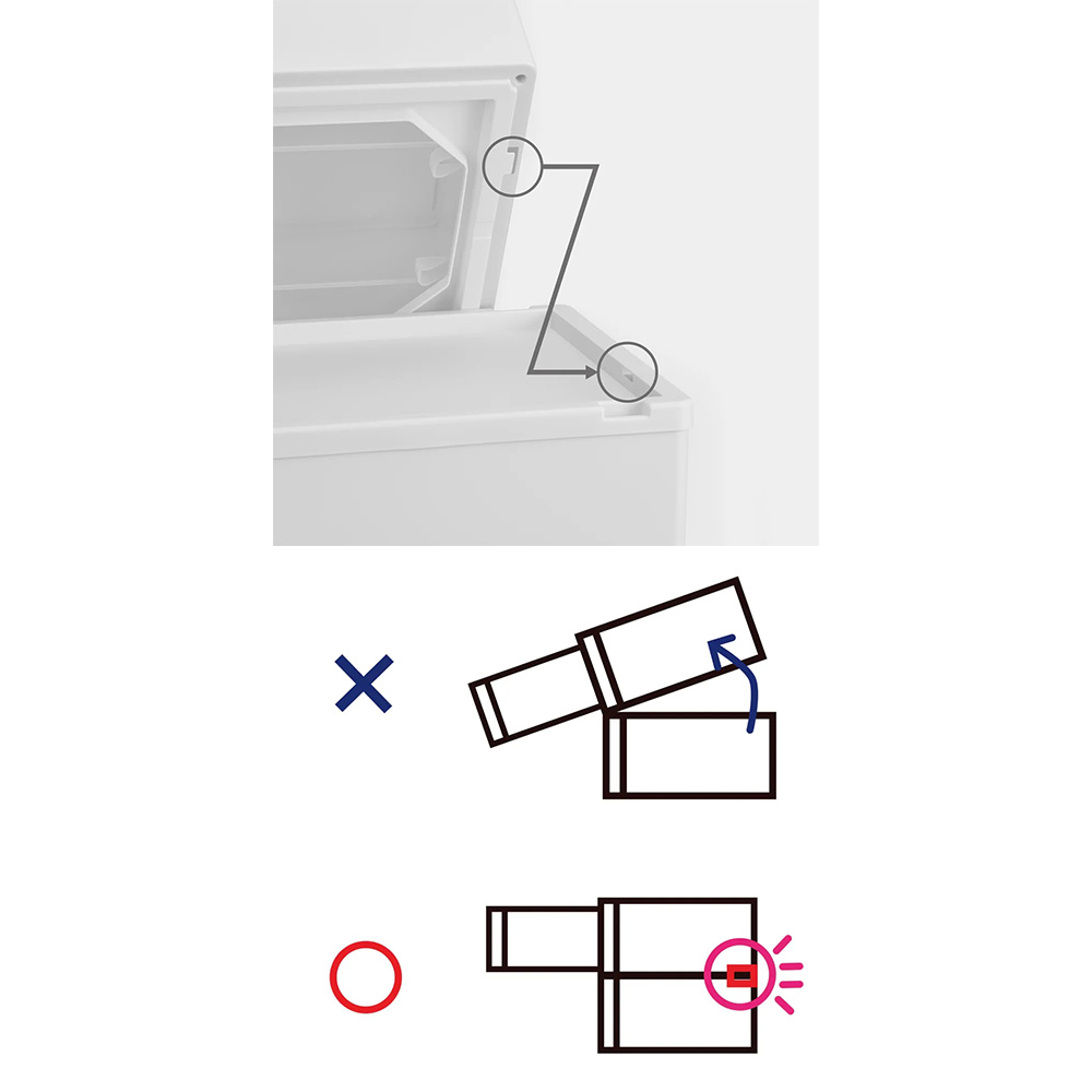 • 【前倒れ防止機能付き】積み重ねた状態で引出しを引いた時に、ケース後部が浮き上がり前方へ倒れてしまうことを防ぎます。