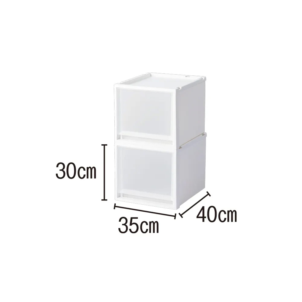 9タイプの豊富なサイズ展開で、自由に組み合わせても高さが揃いやすい設計。奥行40cmのフィッツケースマルチは置き場所を選ばない絶妙なサイズ感で、クローゼットや押し入れ以外の空間でも、すっきりと統一感のある収納を叶えます。どこに置く? 何を入れる? 使い勝手のよい奥行40cmで、収納をもっと自由に、もっと楽しく。さまざまな空間にフィットする奥行40cm圧迫感のない奥行40cmなので、ちょっとした空きスペースや廊下も収納空間に活かすことができ、お部屋がすっきりかたづきます。引っ越しや模様替えの際に、1人でも手軽に組み直しできるフレキシビリティも魅力。dinosなら店頭から持ち帰る手間いらずで欲しいサイズがすぐに見つかり、2個組で家まで届きます。スペースと収納したいものに合わせて組み合わせできます幅・高さが3種類から選べるので多様なシーンに対応します。お好みのサイズをお選びください。家の中のあらゆる場所で、さまざまなモノの収納に!●押し入れ・クローゼット・寝室などで:衣類収納に●キッチンで:キッチンツールや食品のストックにも●リビングで:さまざまな生活用品や防災用品などの収納に●ランドリーで:ハンガーなどの洗濯用品やタオルの収納に●玄関で:キャンプ用品、子どものスポーツ用品、シューズケアグッズに●子ども部屋で:衣類やおもちゃなど、おかたづけ習慣のファーストステップにも奥行浅めの40cmだから、取り扱いがラクラク奥行浅めの分、衣類を入れても従来の奥行サイズより取り扱いしやすい重さなので、女性やご年配の方にもおすすめです。また、衣替えの季節や模様替えの際など、ケースの配置替えも手軽にできます。洗練された収納空間でお部屋をイメージアップ機能的にすぐれた収納ツールでありながら、インテリア性にも秀でたところが魅力。凹凸の少ないシンプルデザインに、前面は高級感のある半透明のすりガラス調を採用しました。うっすら透けて見えるため、収納物も一目瞭然です。便利な連結棚でさらに充実空間に合わせて別売りの専用連結棚を使えば、収納量がさらにアップ。隙間のデッドスペースを活用できて、小物のディスプレイも楽しめます。さりげなくロゴ入り前枠上部に「Fits」のロゴを印字。買い足しをする際、どんな収納ケースを購入したか把握できます。使いやすさと強さのための工夫●アルミ補強板内蔵天板のたわみを防ぐために、アルミ補強板を内蔵。積み重ねても下段が変形しにくく、引き出しやすくなりました。●前倒れ防止機能付き引出しを引いた時に、後部が浮き上がり前に倒れてしまうことを防ぎます。●滑りにくいゴム脚付きゴム脚が付くことで滑りにくく、引き出しやすくなります。最下段にお使いください。●キャスター対応掃除や模様替えの際の移動に便利な差込式キャスターも別売りでご用意。キャスター使用時は高さが約5cmアップします。サステナビリティへの取り組み本体素材のポロプロピレンには再生材を10%以上使用しています。シリーズ商品のご案内フィッツケースは以下のシリーズ商品がございます。※このページはフィッツケースマルチ奥行40cmの販売ページです。・クローゼットタイプ奥行53cm・押し入れタイプ奥行74cm・サイズいろいろ奥行47cm・45cm・フィッツケースマルチ奥行40cm