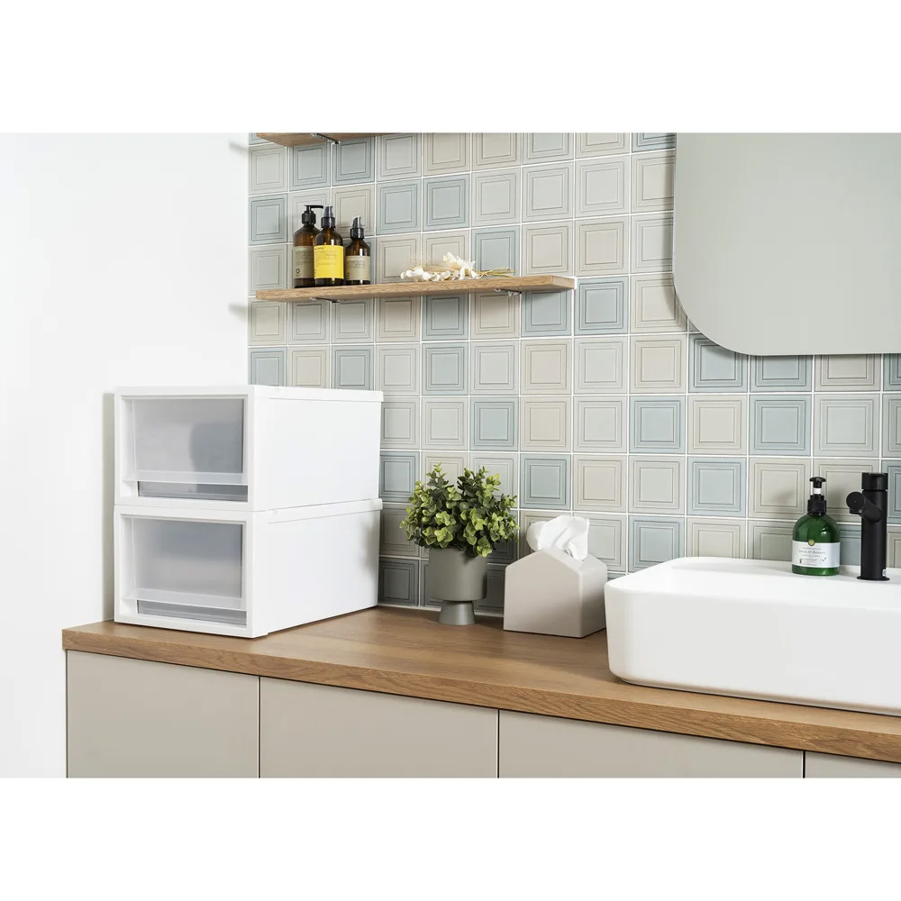 【ランドリーに】洗面台の横にも置きやすいサイズ。タオルの収納に便利です。 ※写真は高さ20cmタイプです。