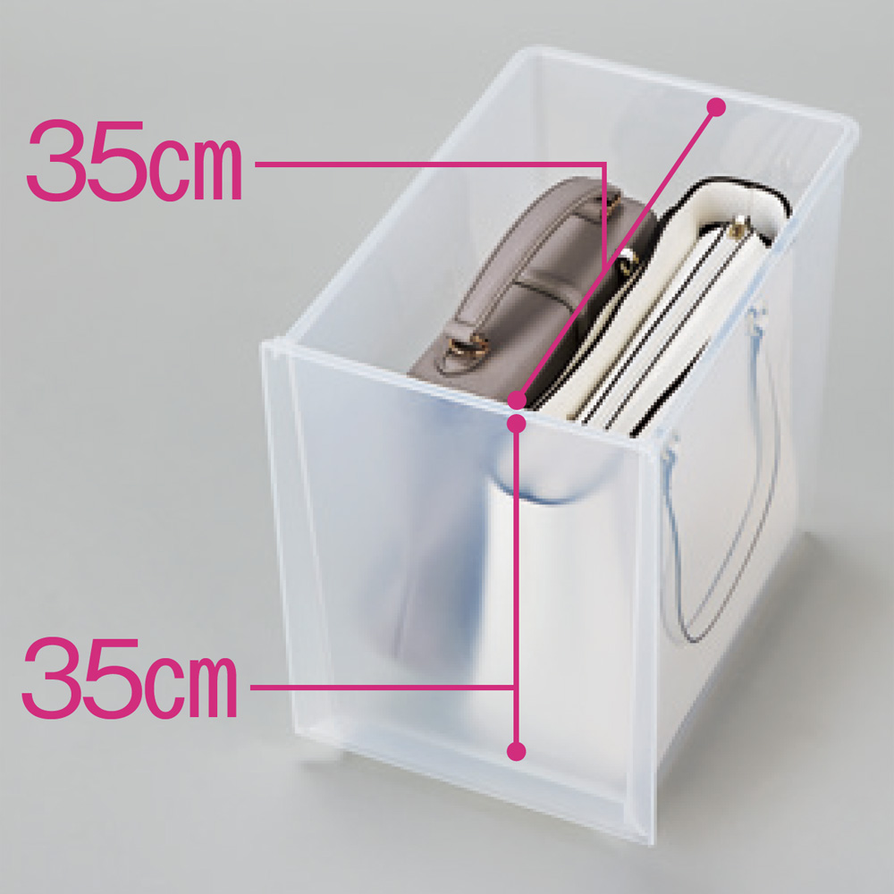 高さ40cmタイプは、かさばるものの収納に大活躍。大切なバッグを立てて収納することもできるので型崩れしにくく、ホコリからも守ります。洗濯用洗剤や防災用品、12ロール入りトイレットペーパーなどの収納にも便利です。