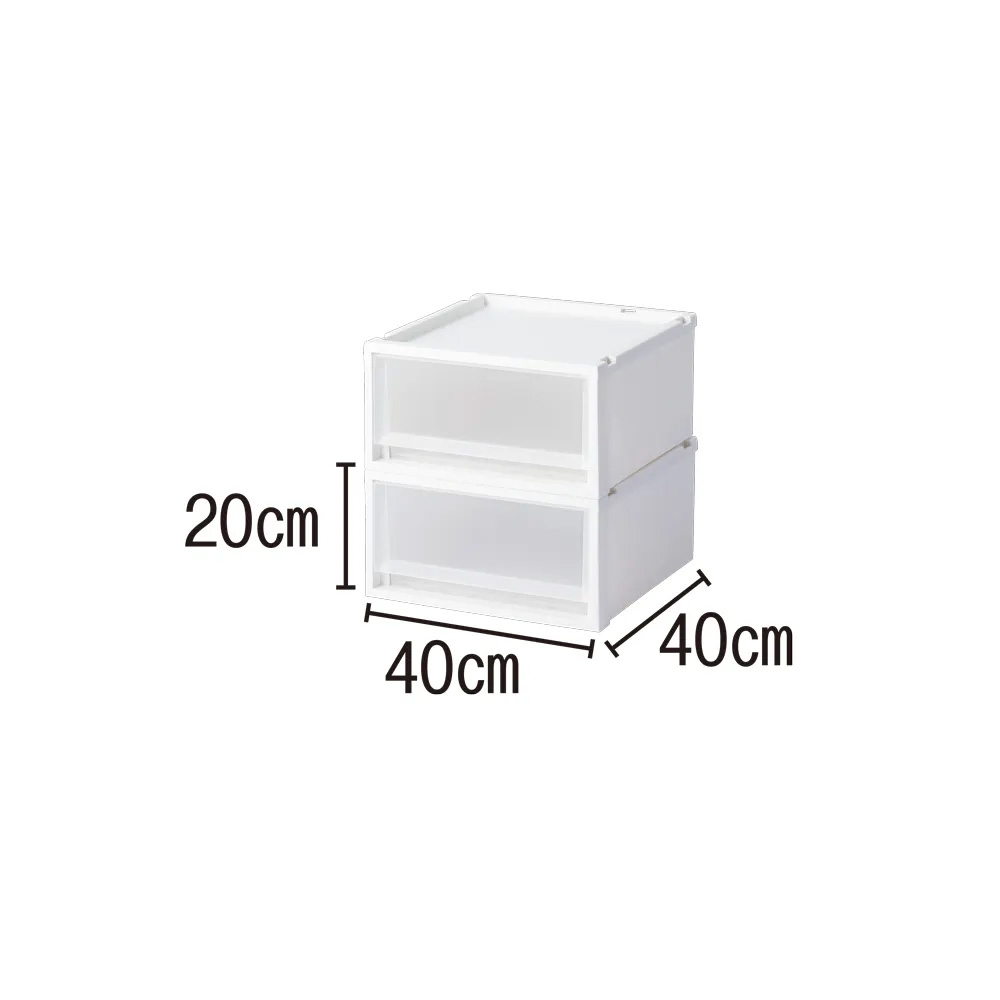 9タイプの豊富なサイズ展開で、自由に組み合わせても高さが揃いやすい設計。奥行40cmのフィッツケースマルチは置き場所を選ばない絶妙なサイズ感で、クローゼットや押し入れ以外の空間でも、すっきりと統一感のある収納を叶えます。どこに置く? 何を入れる? 使い勝手のよい奥行40cmで、収納をもっと自由に、もっと楽しく。さまざまな空間にフィットする奥行40cm圧迫感のない奥行40cmなので、ちょっとした空きスペースや廊下も収納空間に活かすことができ、お部屋がすっきりかたづきます。引っ越しや模様替えの際に、1人でも手軽に組み直しできるフレキシビリティも魅力。dinosなら店頭から持ち帰る手間いらずで欲しいサイズがすぐに見つかり、2個組で家まで届きます。スペースと収納したいものに合わせて組み合わせできます幅・高さが3種類から選べるので多様なシーンに対応します。お好みのサイズをお選びください。家の中のあらゆる場所で、さまざまなモノの収納に!●押し入れ・クローゼット・寝室などで:衣類収納に●キッチンで:キッチンツールや食品のストックにも●リビングで:さまざまな生活用品や防災用品などの収納に●ランドリーで:ハンガーなどの洗濯用品やタオルの収納に●玄関で:キャンプ用品、子どものスポーツ用品、シューズケアグッズに●子ども部屋で:衣類やおもちゃなど、おかたづけ習慣のファーストステップにも奥行浅めの40cmだから、取り扱いがラクラク奥行浅めの分、衣類を入れても従来の奥行サイズより取り扱いしやすい重さなので、女性やご年配の方にもおすすめです。また、衣替えの季節や模様替えの際など、ケースの配置替えも手軽にできます。洗練された収納空間でお部屋をイメージアップ機能的にすぐれた収納ツールでありながら、インテリア性にも秀でたところが魅力。凹凸の少ないシンプルデザインに、前面は高級感のある半透明のすりガラス調を採用しました。うっすら透けて見えるため、収納物も一目瞭然です。便利な連結棚でさらに充実空間に合わせて別売りの専用連結棚を使えば、収納量がさらにアップ。隙間のデッドスペースを活用できて、小物のディスプレイも楽しめます。さりげなくロゴ入り前枠上部に「Fits」のロゴを印字。買い足しをする際、どんな収納ケースを購入したか把握できます。使いやすさと強さのための工夫●アルミ補強板内蔵天板のたわみを防ぐために、アルミ補強板を内蔵。積み重ねても下段が変形しにくく、引き出しやすくなりました。●前倒れ防止機能付き引出しを引いた時に、後部が浮き上がり前に倒れてしまうことを防ぎます。●滑りにくいゴム脚付きゴム脚が付くことで滑りにくく、引き出しやすくなります。最下段にお使いください。●キャスター対応掃除や模様替えの際の移動に便利な差込式キャスターも別売りでご用意。キャスター使用時は高さが約5cmアップします。サステナビリティへの取り組み本体素材のポロプロピレンには再生材を10%以上使用しています。シリーズ商品のご案内フィッツケースは以下のシリーズ商品がございます。※このページはフィッツケースマルチ奥行40cmの販売ページです。・クローゼットタイプ奥行53cm・押し入れタイプ奥行74cm・サイズいろいろ奥行47cm・45cm・フィッツケースマルチ奥行40cm