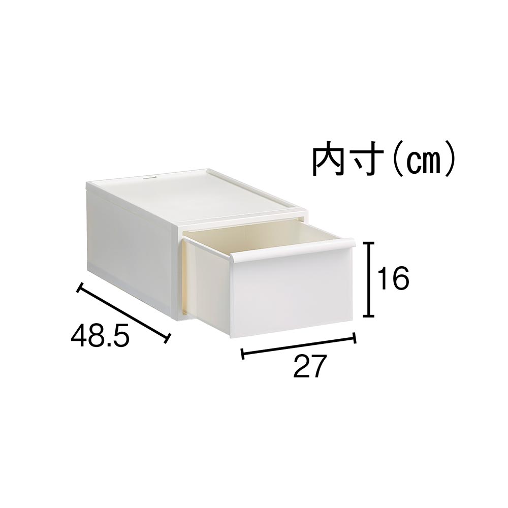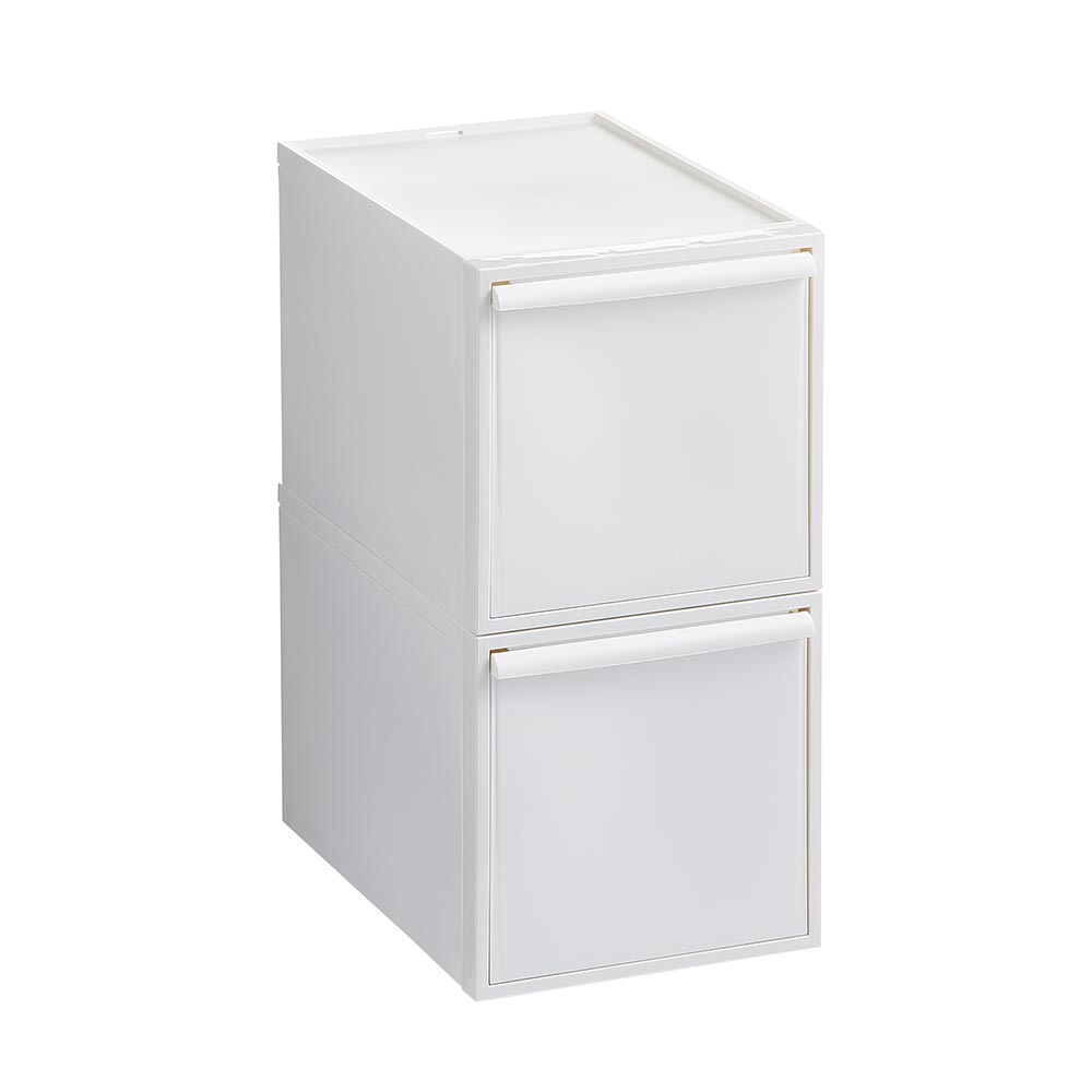 積み重ねて使える、衣類収納でクローゼット周りがすっきり。洋服の大量収納の叶う収納力なのに、中身が隠せるチェストでお部屋がおしゃれに片付きます。すき間収納としても使えるスリムなサイズで省スペースが叶います。ウォークインクローゼットや押入れにも収まる奥行き52cm。シンプルなデザインにこだわった衣類チェストミニマルデザインのスクエアフォルムにこだわったお洒落な洋服収納ケースのご紹介です。隠せる収納で、すっきりと整理整頓ができます。引き出しの取っ手もシンプルなデザインです。クローゼットの中はもちろんお部屋で使ってもオシャレに決まるクローゼット収納です。用途に合わせて選べる深さお好みに合わせて高さが3種類から選べます。浅型:下着やハンカチの収納におすすめ。中型:シャツやスポーツタオルの収納に。深型:トレーナーやニットなども収納可能。浅型×4個、中型×3個、深型×2個を縦に積み上げた時に、同じ高さになる設計です。衣替えにも便利なスタッキング仕様重ねて使用できるので面倒な季節ごとの衣替えもそのまま入れ替えるだけで簡単に完了♪3サイズ展開ですが、幅と奥行きは同じなので積み方・組み合わせは自由自在です。隙間収納にもなるスリムなサイズ幅32cmなのでハンガーラック横の隙間にも。樹脂ケースなので汎用性が高く、キッチン収納、ストッカー、サニタリ収納、サニタリチェスト、トイレ収納など衣類収納以外でも活躍します。汚れづらくお手入れが簡単なのもポイント。スリムさはもちろん、シャツを畳んでちょうどよく収まるサイズも意識した設計です。