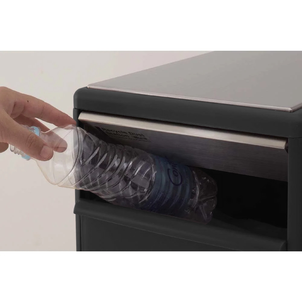 「口コミ」でもご好評の人気のタワー型ダストボックス!場所をとらずに隙間に収まる省スペースが魅力。たったの幅25.5cmの収まる縦型5分別のスリムなごみ箱。ゴミ箱本体は水・汚れを簡単に拭き取れます。収納物やゴミの中身が透けない仕様に変更になりました。環境への意識の高まりからどんどん細分化するゴミ分別。すっきりスマートにこなしたいものです。「分別スウィングステーション」なら、最大5段タイプまで揃ったダストボックスです。付属のステッカーでひと目で生ゴミからリサイクルまで分別できるごみ箱です。人気の秘密はゴミ箱としては珍しい幅25.5cmのキッチンの隙間に収まるサイズ。場所をとらない、上方向の空間を有効に使える隙間型・縦型(タワー型)分別で、せまい幅でもしっかり多分別が可能なキッチンダストボックスです。【分別しやすい考えられた構造】上段は缶などの投入口を隠したスイング扉。引き出しの内部はレジ袋をかけて分別できます。最下段は足で踏んでフタが開閉するペダル式です。手を使わずにゴミが捨てられるので、調理中にも便利です。水、汚れを簡単に拭き取れる樹脂製で清潔に使えます。