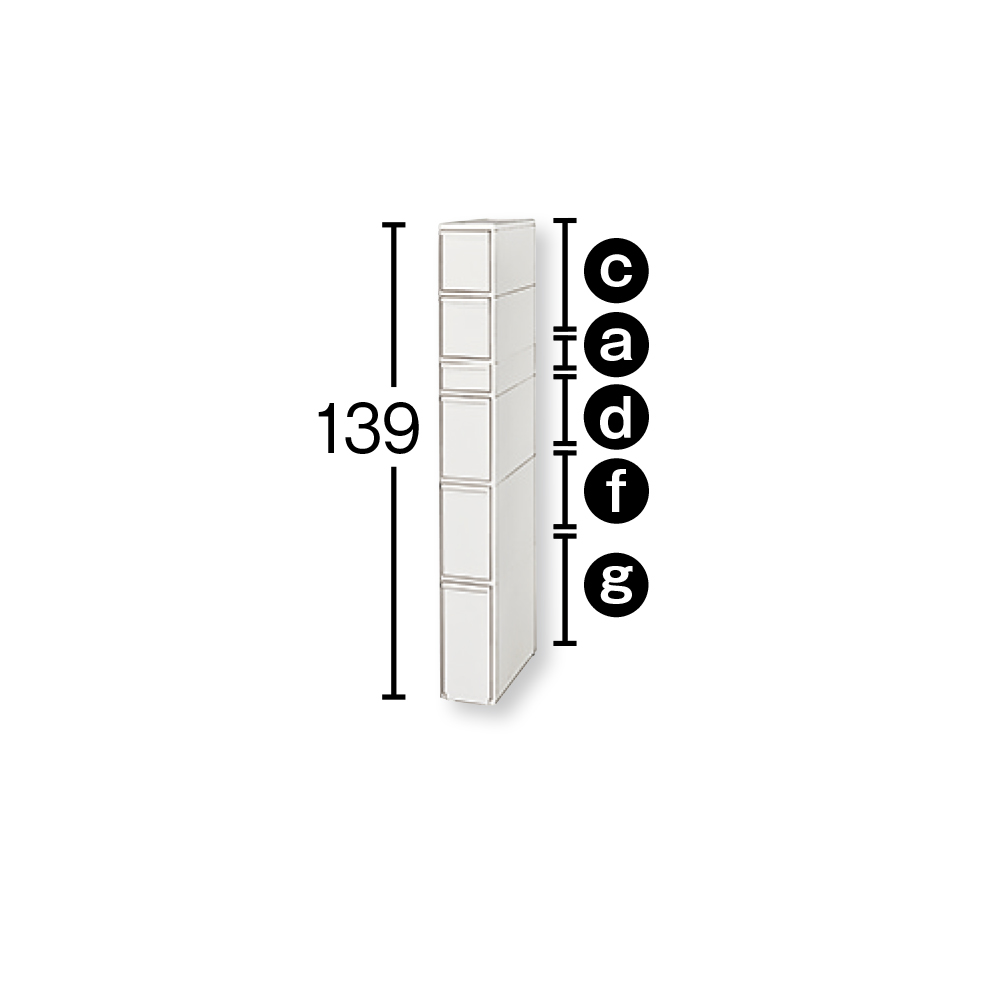 深さが異なる多段引き出しで、物に合わせた分類収納がしやすいストッカー。キッチンのわずかなすき間にすっぽり収まり、内部が透けないので見た目もすっきり!わずか17cmのすき間に置けて省スペース●シンクや冷蔵庫横などのすき間を有効利用できる幅17cm。●狭いキッチンでも使いやすいスリムサイズ。並べて置いても場所を取りません。●6段の引き出しにストック類が効率よく整理でき、天板上に小物も置ける高さ139cm。●収納物が透けて見えないので、生活感が漂わず見た目もスマートです。●水回りでも気兼ねなく使える樹脂製。汚れもサッとひと拭きで、お手入れがラクです。●引き出しは抜け落ち防止のストッパー付きで安心です(最下段を除く)。●体底面には小さなキャスター(コロ)が付いており、お掃除の際の移動もスムーズ。※コロは後ろ側の2箇所のみ付属しております。●清潔感のあるホワイト色。キッチンだけでなく、洗面所やトイレ、子供部屋などでも便利に使えます。●もしもの災害時用にストックしている非常食や備蓄品の保存場所としてもおすすめです。●丈夫で丁寧なつくりの日本製です。引き出しの深さが異なり、物に合わせた分類がラク!●1・2段目は袋入りラーメンがちょうどよく収まる内寸高16cmの引き出し。●3段目はチューブの調味料などの収納に便利な内寸高6.5cmの引き出し。●4段目は500m?のペットボトルがぴったり入る内寸高21cmの引き出し。●5段目は1?ボトルの調味料などがスポッと収まる内寸高25.5cmの引き出し。●最下段は2リットルボトルが入る内寸高30.5cmの引き出し。●最下段の引き出しはローラー付きで、重い物を入れてもラクに引き出せます。収納量やスペースに合わせて選べる12種類のラインナップ●すき間に収まる幅17cmタイプは4段・5段・6段・7段・8段・9段の6種類。●収納力のある幅25.5cmタイプも4段・5段・6段・7段・8段・9段の6種類をご用意。