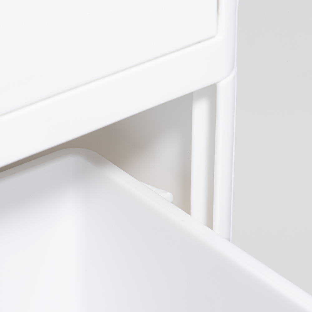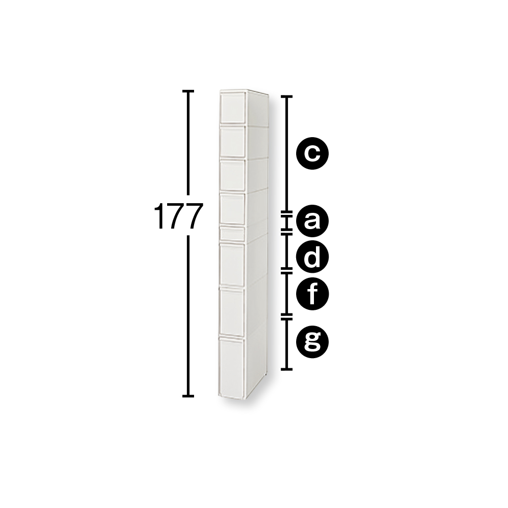 深さが異なる多段引き出しで、物に合わせた分類収納がしやすいストッカー。キッチンのわずかなすき間にすっぽり収まり、内部が透けないので見た目もすっきり!わずか17cmのすき間に置けて省スペース●シンクや冷蔵庫横などのすき間を有効利用できる幅17cm。●狭いキッチンでも使いやすいスリムサイズ。並べて置いても場所を取りません。●8段の引き出しにストック類がたっぷり収納でき、冷蔵庫と並べてもすっきり見える高さ177cm。●収納物が透けて見えないので、生活感が漂わず見た目もスマートです。●水回りでも気兼ねなく使える樹脂製。汚れもサッとひと拭きで、お手入れがラクです。●引き出しは抜け落ち防止のストッパー付きで安心です(最下段を除く)。●体底面には小さなキャスター(コロ)が付いており、お掃除の際の移動もスムーズ。※コロは後ろ側の2箇所のみ付属しております。●清潔感のあるホワイト色。キッチンだけでなく、洗面所やトイレ、子供部屋などでも便利に使えます。●もしもの災害時用にストックしている非常食や備蓄品の保存場所としてもおすすめです。●丈夫で丁寧なつくりの日本製です。引き出しの深さが異なり、物に合わせた分類がラク!●1〜4段目は袋入りラーメンがちょうどよく収まる内寸高16cmの引き出し。●5段目はチューブの調味料などの収納に便利な内寸高6.5cmの引き出し。●6段目は500m?のペットボトルがぴったり入る内寸高21cmの引き出し。●7段目は1?ボトルの調味料などがスポッと収まる内寸高25.5cmの引き出し。●最下段は2リットルボトルが入る内寸高30.5cmの引き出し。●最下段の引き出しはローラー付きで、重い物を入れてもラクに引き出せます。収納量やスペースに合わせて選べる12種類のラインナップ●すき間に収まる幅17cmタイプは4段・5段・6段・7段・8段・9段の6種類。●収納力のある幅25.5cmタイプも4段・5段・6段・7段・8段・9段の6種類をご用意。