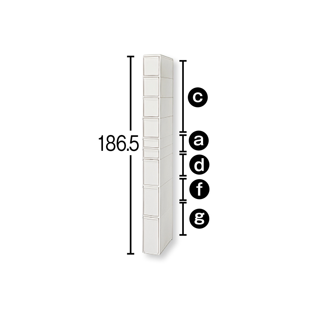 深さが異なる多段引き出しで、物に合わせた分類収納がしやすいストッカー。キッチンのわずかなすき間にすっぽり収まり、内部が透けないので見た目もすっきり!わずか17cmのすき間に置けて省スペース●シンクや冷蔵庫横などのすき間を有効利用できる幅17cm。●狭いキッチンでも使いやすいスリムサイズ。並べて置いても場所を取りません。●9段の引き出しにストック類が大量収納できる高さ186.5cm。●収納物が透けて見えないので、生活感が漂わず見た目もスマートです。●水回りでも気兼ねなく使える樹脂製。汚れもサッとひと拭きで、お手入れがラクです。●引き出しは抜け落ち防止のストッパー付きで安心です(最下段を除く)。●体底面には小さなキャスター(コロ)が付いており、お掃除の際の移動もスムーズ。※コロは後ろ側の2箇所のみ付属しております。●清潔感のあるホワイト色。キッチンだけでなく、洗面所やトイレ、子供部屋などでも便利に使えます。●もしもの災害時用にストックしている非常食や備蓄品の保存場所としてもおすすめです。●丈夫で丁寧なつくりの日本製です。引き出しの深さが異なり、物に合わせた分類がラク!●1〜4段目は袋入りラーメンがちょうどよく収まる内寸高16cmの引き出し。●5・6段目はチューブの調味料などの収納に便利な内寸高6.5cmの引き出し。●7段目は500m?のペットボトルがぴったり入る内寸高21cmの引き出し。●8段目は1?ボトルの調味料などがスポッと収まる内寸高25.5cmの引き出し。●最下段は2リットルボトルが入る内寸高30.5cmの引き出し。●最下段の引き出しはローラー付きで、重い物を入れてもラクに引き出せます。収納量やスペースに合わせて選べる12種類のラインナップ●すき間に収まる幅17cmタイプは4段・5段・6段・7段・8段・9段の6種類。●収納力のある幅25.5cmタイプも4段・5段・6段・7段・8段・9段の6種類をご用意。