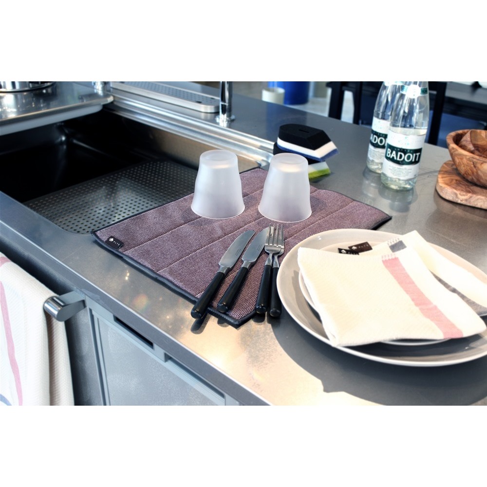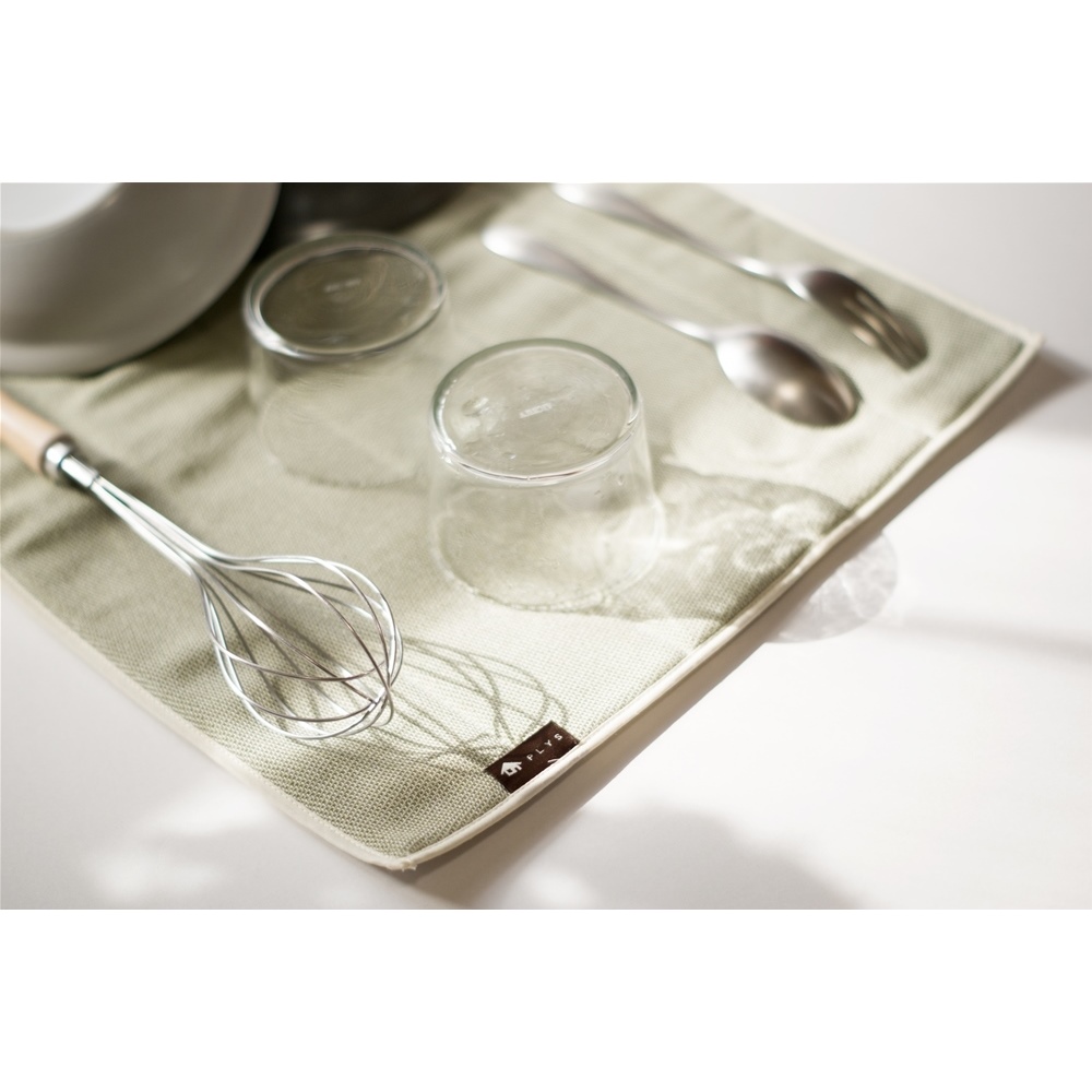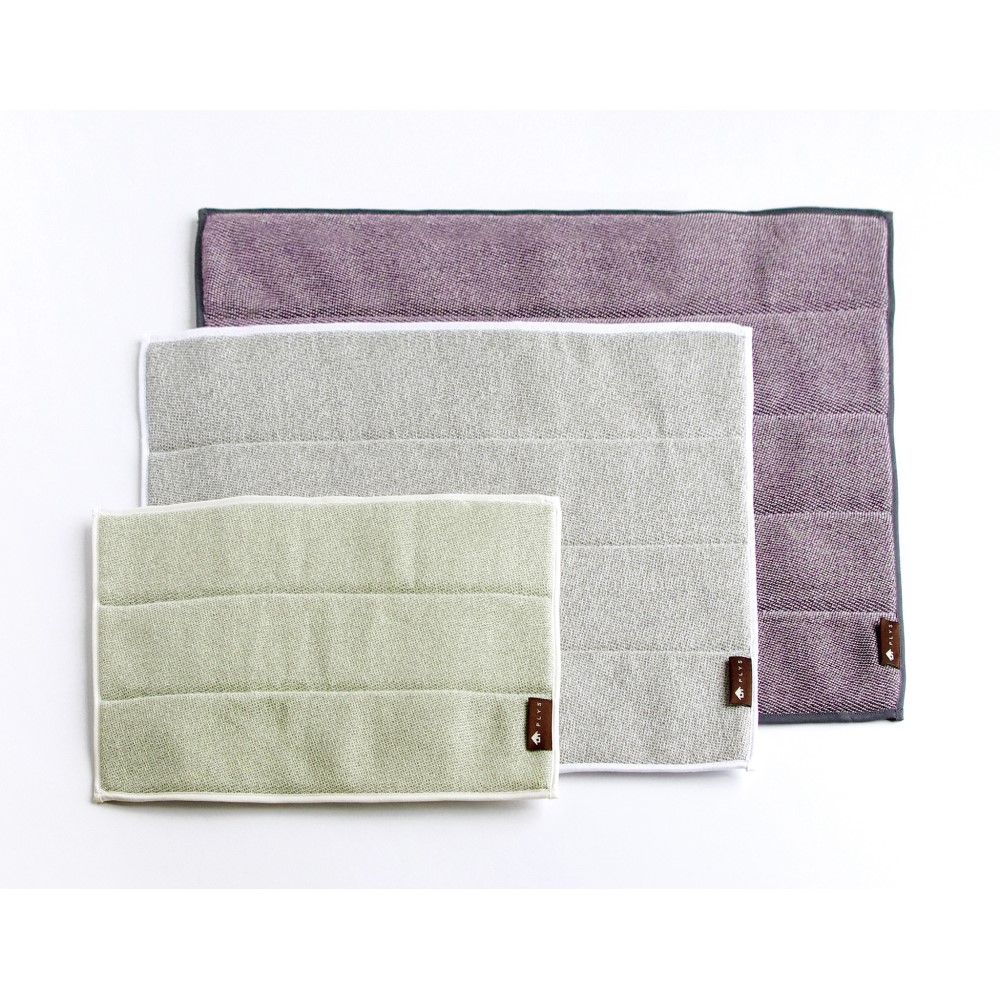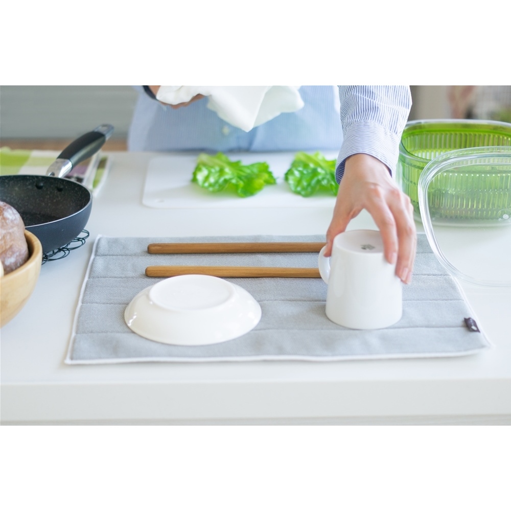 洗い終わった食器類やグラス類、調理器具のちょっとした水切り置き場に便利。表面に梅炭抄繊糸をつかった吸水マットです。落ち着いたキッチンに似合う3色展開。・水切かごに入り切らなかった食器や、拭いたばかりの食器などの一時置き場に便利で、限られたキッチンスペースの中で、快適に設置できます。・使い終わった後は、収納もできてキッチンもスッキリ。吸水性のいい水切りマットです。・産業廃棄物になってしまう梅の種を、炭化させパウダー状にして繊維に練りこませており、消臭・調湿効果があります。・中に挟まれたウレタンがクッションとなり、食器への衝撃をやわらげます。
