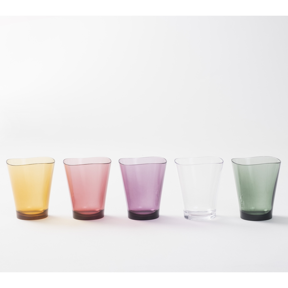 ガラスのように透明ながら、1000回落としても割れない樹脂(トライタン)製のタンブラー。職人の仕事によりゆらぎを持たせた薄い飲み口は、なめらかな口当たりを可能に。アウトドアやお子様がいるご家庭にもおすすめ。 1000回落としても割れない耐久性まるで本物のガラスのようにクリアですが、実は強度と透明度が高い「トライタン」という樹脂製です。うっかり手が滑っても大丈夫。1000回落としても割れないほどの丈夫さが特長です。お子さまがいるご家庭やアウトドアなど、毎日の様々なシーンで安心してお使いいただけます。安心と誇りの日本製石川県のメーカーが丁寧に仕上げた日本製ならではのきめ細かな品質。確かなものづくりの力で、長く愛用できる逸品です。1.5mmの薄い飲み口で、一口ごとに感動飲み口はわずか1.5mm。なめらかな口当たりが、飲みものをより美味しく感じさせてくれます。炭酸水やビール、ジュースも美味しくいただけます。耐熱温度は100℃あるのでホットもOK。どんな暮らしにも馴染む落ち着いた5色セットシンプルで洗練されたカラーを5色セレクト。朝食からディナーまで、どんなテーブルにも溶け込むデザインです。家族や来客との色分けにも便利です。気軽に使えて、お手入れもしやすい毎日使ってもお手入れラクラク。食洗機にも対応しているので、忙しい日々にも余計な手間はかかりません。独自の口元の「ゆらぎ形状」は逆さまにした時に空気が通るので、洗った後も素早く乾きます。世代を問わず、毎日にフィット軽くて持ちやすい設計で、子どもから年配の方まで安心してご使用いただけます。毎日の飲み物の時間に、心地よさをプラスします。生涯保証で、ずっと安心もしもの時にも安心。万が一割れてしまった場合は、生涯保証で新品と交換いたします。大切な方への贈り物にも、自信を持っておすすめできるタンブラーです。