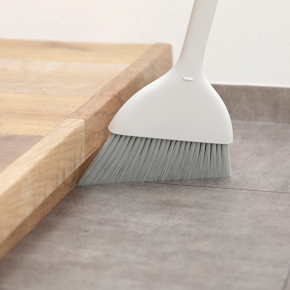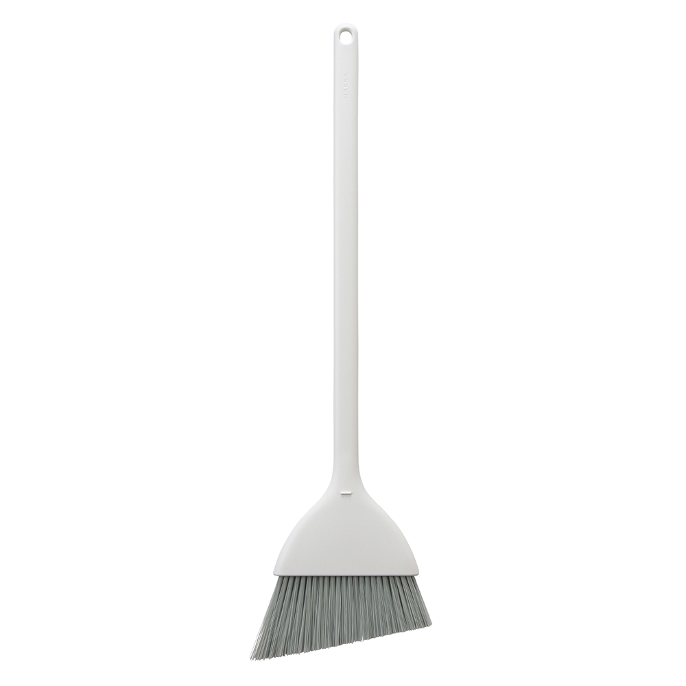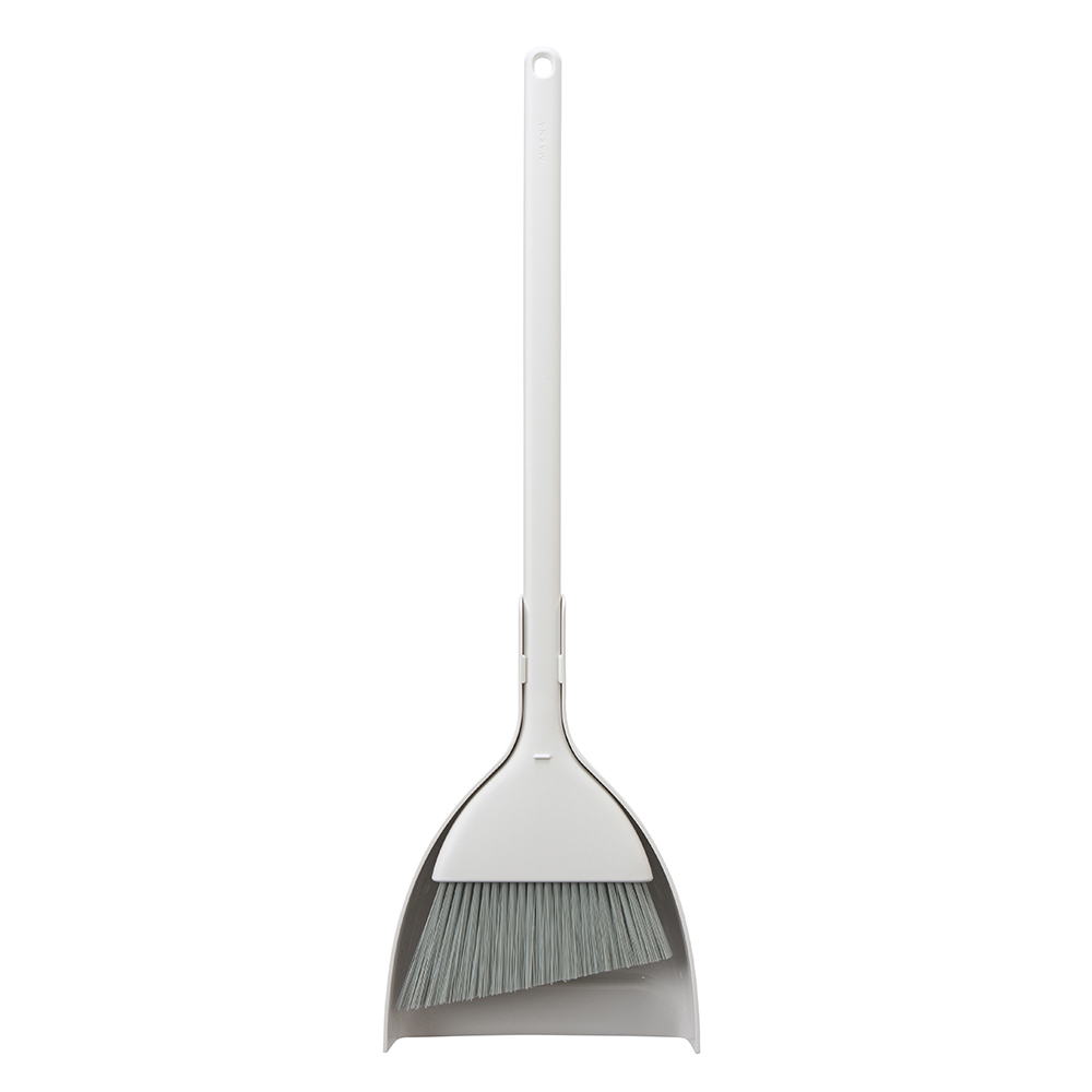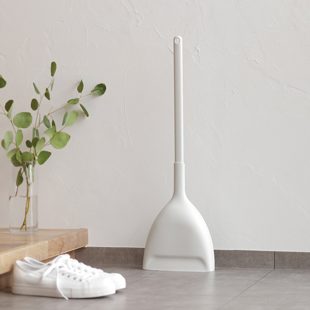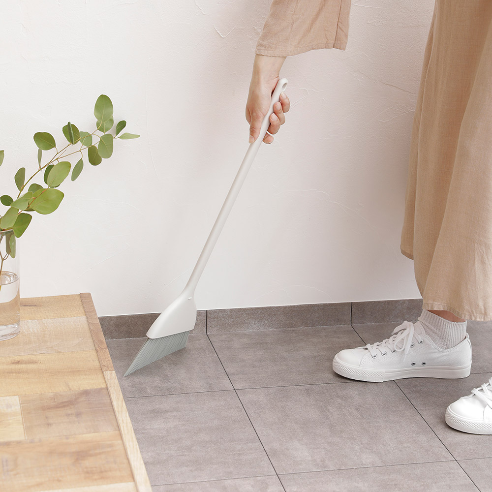 立たせてスマートに収納できる自立型のほうき・ちりとりセット。使っている時も使っていない時も“きれい"をコンセプトにした「きれいに暮らす。」シリーズです。インテリアを邪魔しないスッキリしたデザインは、玄関・室内・屋外等、置く場所を選びません。スリムな形状で細かい毛先のブラシ部分は掃きやすいように角度をつけており、薄い楕円のグリップは握りやすさを考慮し、隅々まで掃除しやすく掃きやすさを実感できます。ちりとりには段差をつけて、ごみがこぼれにくい仕様となっています。