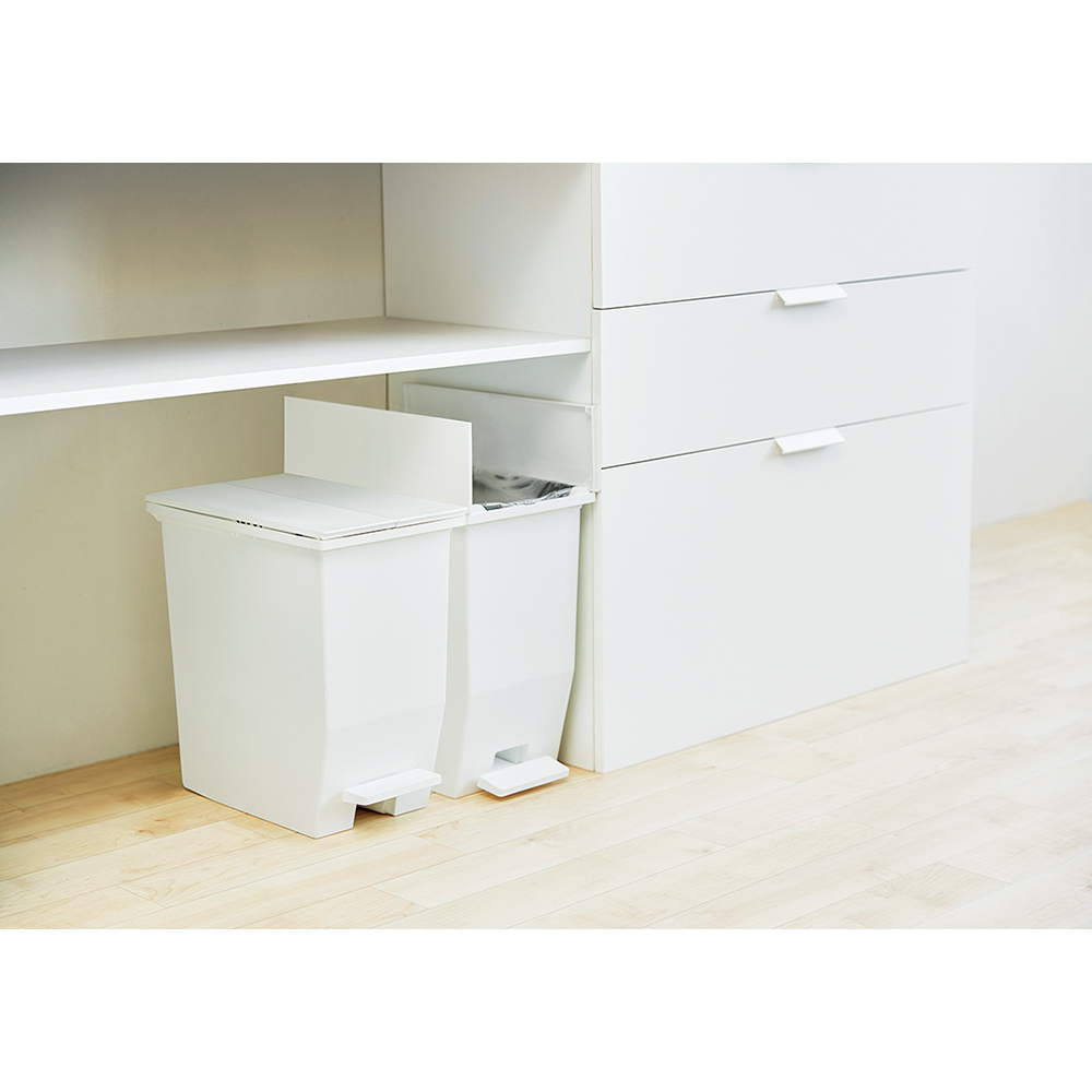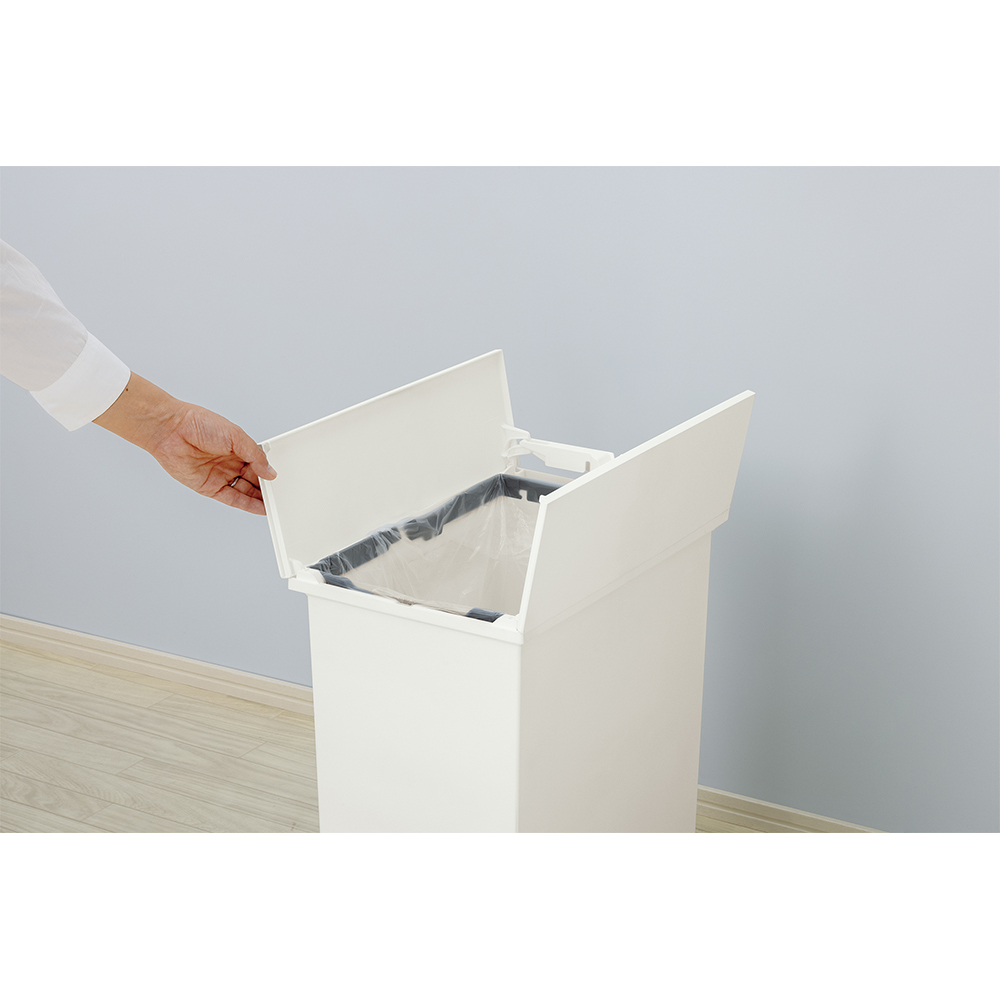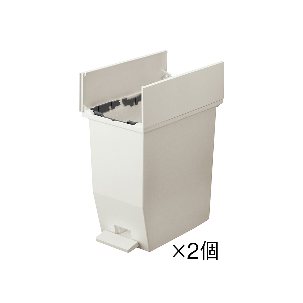 蓋が左右に開くから、棚下やシンク下にも無理なく置けるダストボックス。ペダル式で手を触れずにゴミ捨てでき、さらに抗菌加工で清潔です!左右に開くツイン蓋で省スペース●開口時、蓋の高さが本体幅の半分で済むので、キッチンのコンロ下やカウンター下に置いたままでゴミが捨てられます。●蓋を2枚にすることで、軽い力で素早く蓋が開き、調理の時短にもつながります。●棚下に置けるから、狭いキッチンでも動線の邪魔にならず、リビングやダイニングからゴミ箱が隠せるというメリットも。●20リットル(幅22cm奥行36cm高さ38cm)の2個組。低めの棚下にも置けて、テレワーク用のデスク下などでも活躍します。トイレや洗面所のゴミ箱にも重宝なサイズです。蓋に触れずにゴミが捨てられるペダル式●足元のペダルを踏むと開閉し、蓋に手を触れる必要もないため衛生的です。●両手がふさがっていても開閉できるので、忙しい調理中にも役立ちます。●抗菌加工を施した表面材は細菌の増殖を抑制します。防汚(汚れがつきにくく、落ちやすい)加工で、お手入れも簡単。これからの生活様式になじむ仕様です。細かい部分にも使いやすい工夫が!●本体の後部にキャスター2個付き。前側を少し持ち上げて手前に引き出すことができ、ゴミ袋の装着や掃除の際の移動も簡単。また、調理中にそばに寄せてスムーズにゴミ捨てができます。●ゴミ袋をしっかりと固定できる袋止め付き。ゴミ袋が外にはみ出さず、見た目もすっきりです。●持ち手付きゴミ袋を使えば、ペール内で分別が可能です。●どんな空間にも合うシンプルなスクエアデザイン。ホワイトとブラックの2色からお選びいただけます。●安心で丁寧なつくりの日本製です。以下の6パターンから選べます●20リットル(幅22cm奥行36cm高さ38cm)の2個組。●20リットル(幅22cm奥行36cm高さ38cm)の3個組。●35リットル(幅22cm奥行42.5cm高さ48cm)の2個組。●35リットル(幅22cm奥行42.5cm高さ48cm)の3個組。●45リットル(幅27cm奥行42.5cm高さ48cm)の2個組。●45リットル(幅27cm奥行42.5cm高さ48cm)の3個組。