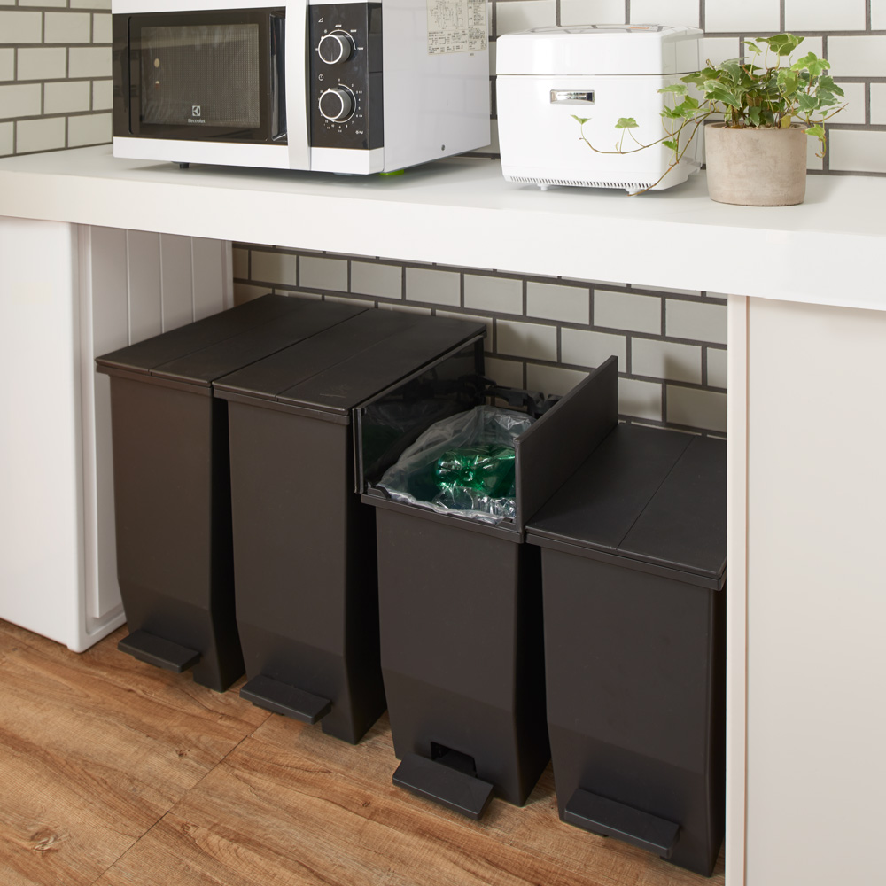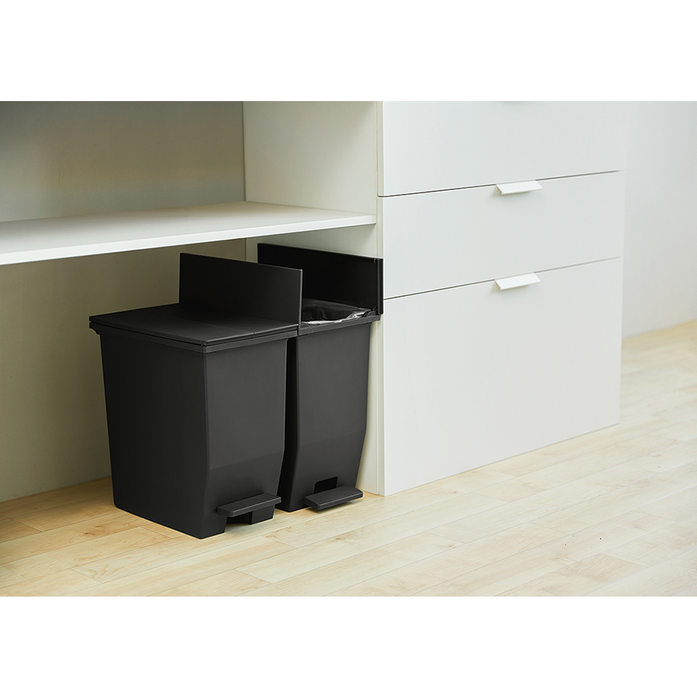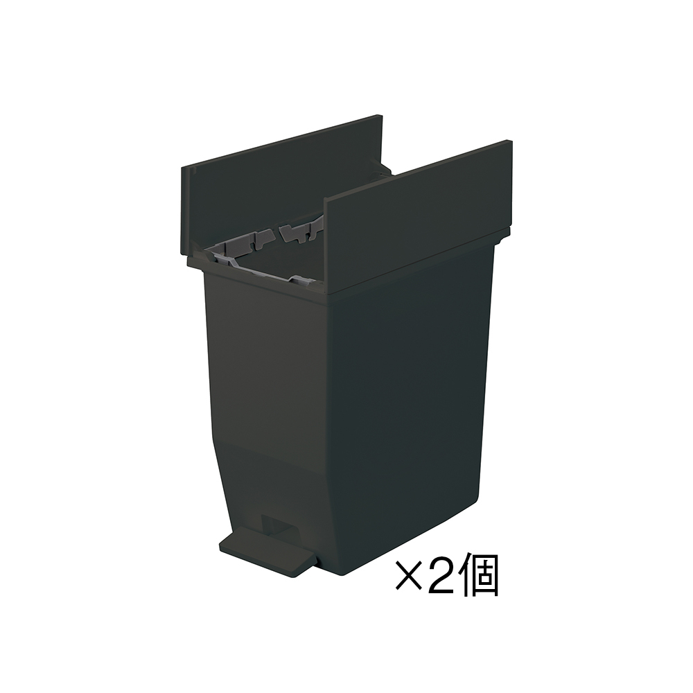 コーディネート例(イ)ブラック 棚下に置けて、手を触れずにゴミ捨てできる抗菌加工のダストボックス。 ※お届けは写真右の20リットル・2個組みタイプです。