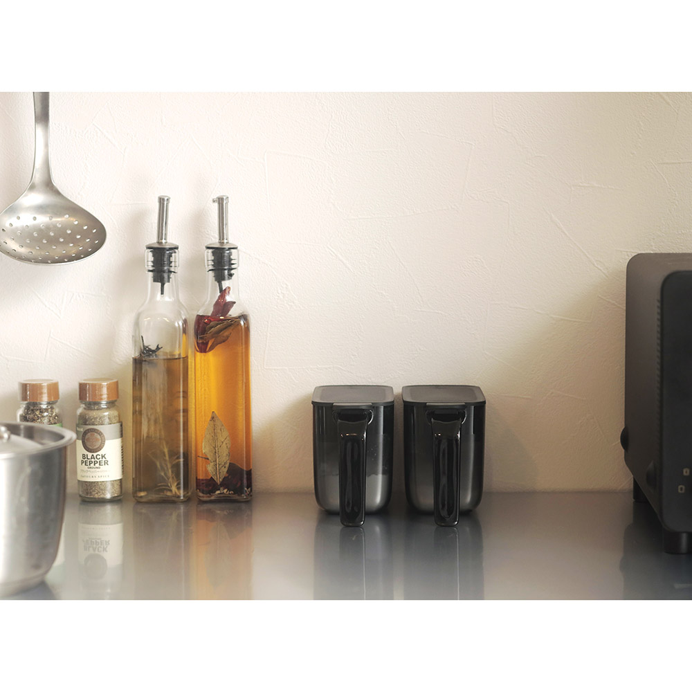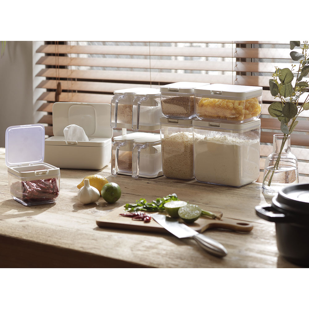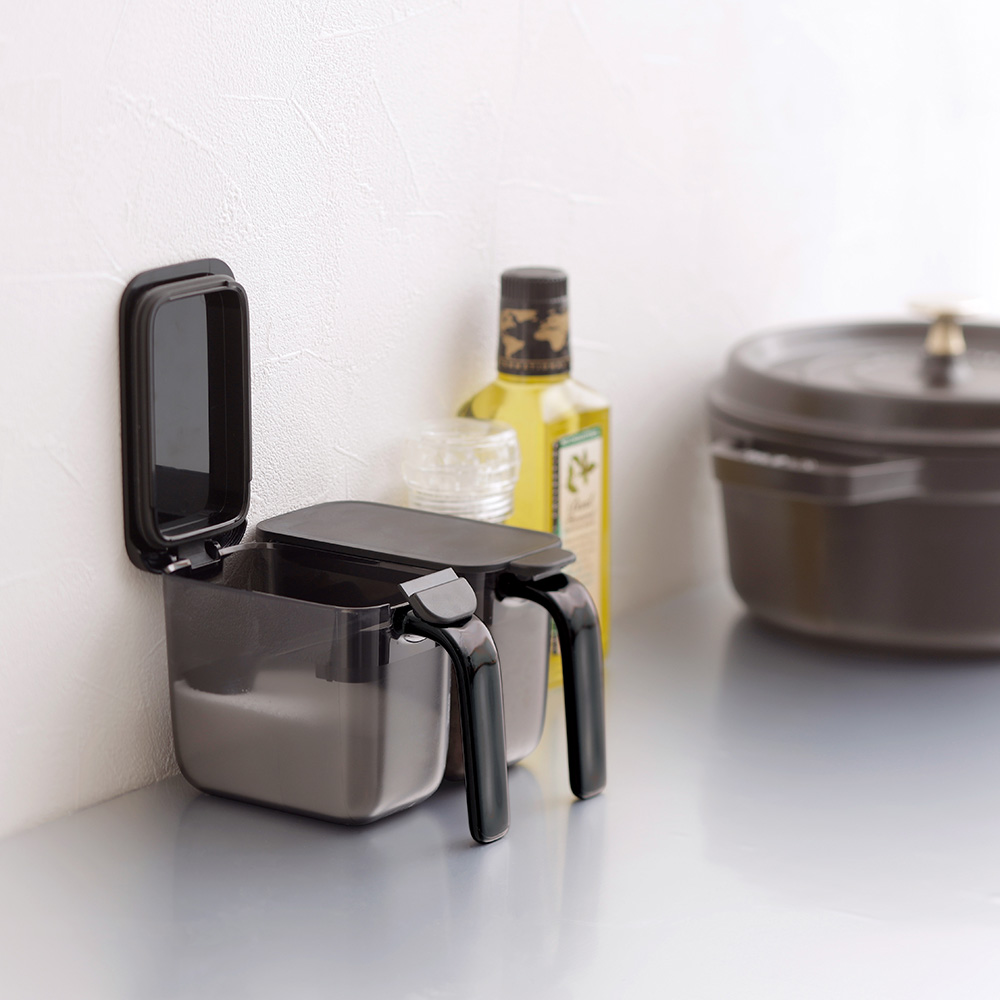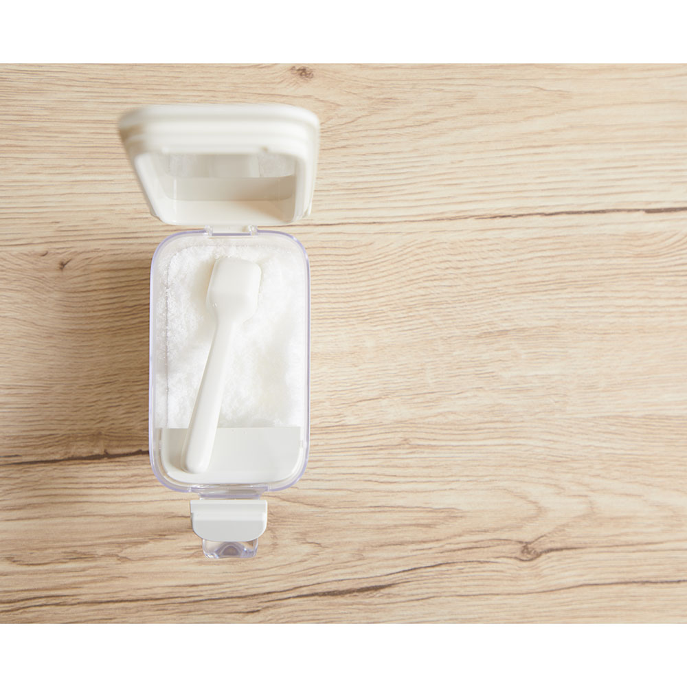 密閉性と操作性を兼ね備えた、使う人に寄り添う収納用品のシリーズです。いつまでも、まるで開封したてのように買ったときの風味を保ってくれる保存容器シリーズです。●ワンタッチで簡単にオープン!フタの置き場に困らないのも嬉しいポイントです。●フタが奥に開くため手元が見やすく、さっと調味料をすくえます。●シリコーンゴムのパッキンが付いているので、しっかり閉まって湿気を防ぎます。●付属のスプーン小さじ1(5ml)をすり切れる板付きです。●埋もれがちなスプーンは、すりきり板に立て掛けられます。●満量位置がわかりやすく落ち着いた印象になる、すりガラス調。●パッキンとすり切り板が取り外せるので、衛生的にお使いいただけます。