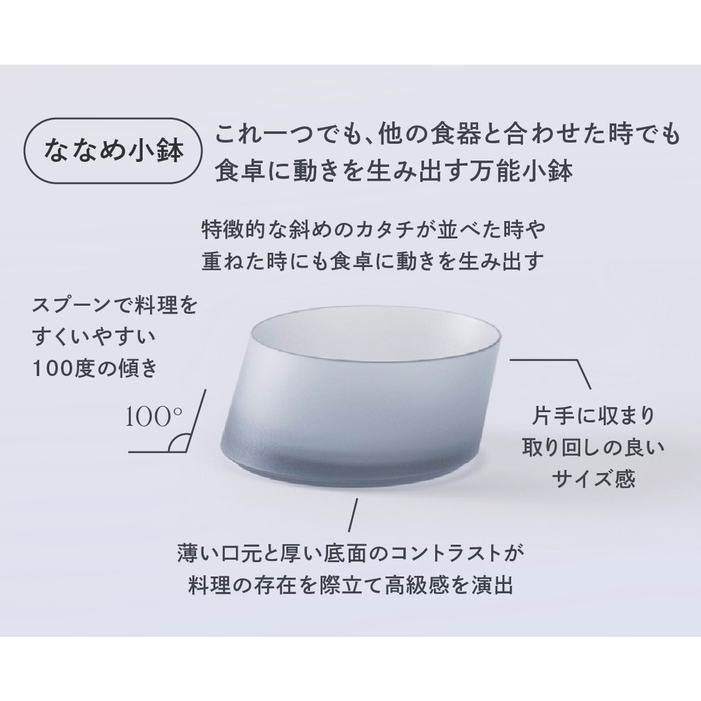 食卓に立体感を演出。メイン料理を囲む美しいデザインの斜め小鉢。ARASシリーズとはお気に入りの食器を持っていても、割れる心配があったり手入れが必要だったりと、なかなか普段使いしずらい。「だけど、毎日の食事をこだわりたい!」ARASは、こだわりのある人が普段使いできる食器を目指し、使いやすく、料理をより美味しくする、新素材の食器を発明しました。いちから設計して誕生した今までにないカタチで使いやすく、料理をより美味しくする最新素材を採用。お手入れが簡単で、割れることがないから、手軽にずっと使える。 星付きレストランのシェフも認めるデザイナーが手掛けた食器です。盛り付けから片付けまで使いやすく心地よい重さを感じられます。01.美しいカタチ「小鉢料理、ディップソース、麺つゆ用、デザートなど入れるものを選びません」◆特徴的な斜めのカタチが、並べた時や、重ねた時にも食卓に動きを生み出す◆100 度の傾きにより、スプーンで料理をすくいやすいカタチを実現◆薄い口元と厚い底面のコントラストが、料理の存在を際立て高級感を引き立てる◆小鉢料理、ディップソース、麺つゆ用、デザートなど入れるものを選びません02.美しい色「料理の表現を広げるカラー」料理を美しく魅せる、豊富なカラーバリエーション様々な料理や食事を想定しながら、食材の色が生かされる色味をラインナップ。複数色使いにも馴染んでくれます。03. 樹脂とガラスでできた新素材「お子様からご来客、自分自身にも。みんなに優しい器」◆食洗器・漂白剤・次亜塩素酸も使用可能◆重ねて効率よく収納可能◆他の陶磁器への器にもキズがつきにくい器にも優しいカトラリーです。耐久性に自信があるからこそ「生涯破損保証」付き。万が一、破損(割れ・欠け)してしまった場合にメーカー(ARAS)に送り返していただけますと新しいものと交換致します。※傷は対象外となっております。※生涯破損保証と同封していただく必要がございます。※送料はお客様負担となります。ご了承くださいませ。04. ARASのサステナブル「環境に配慮した取り組み」日本の自社工場生産だからできるリサイクル素材を活用した取り組み。永く使え、役目を終えた後は100%リサイクル可能な素材にこだわり製造・開発。◆生涯破損保証◆サステナブルを推進するコレクションアウトドアやピクニックでも大活躍非常に丈夫で傷もつきにくいため、和食・洋食・中華を含めた家庭でのご使用はもちろん、ピクニックやキャンプ、BBQでも活躍します。どんなシーンもおしゃれに彩ります。