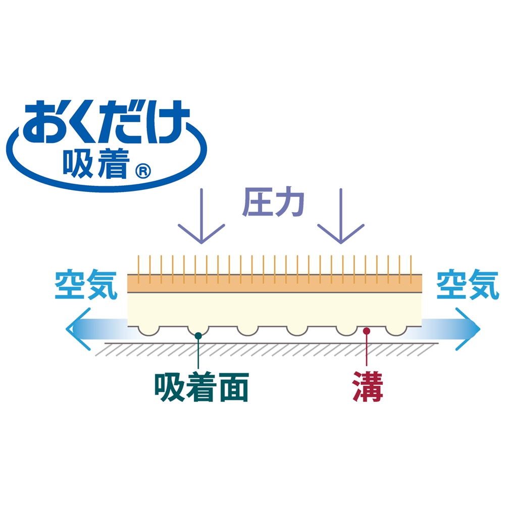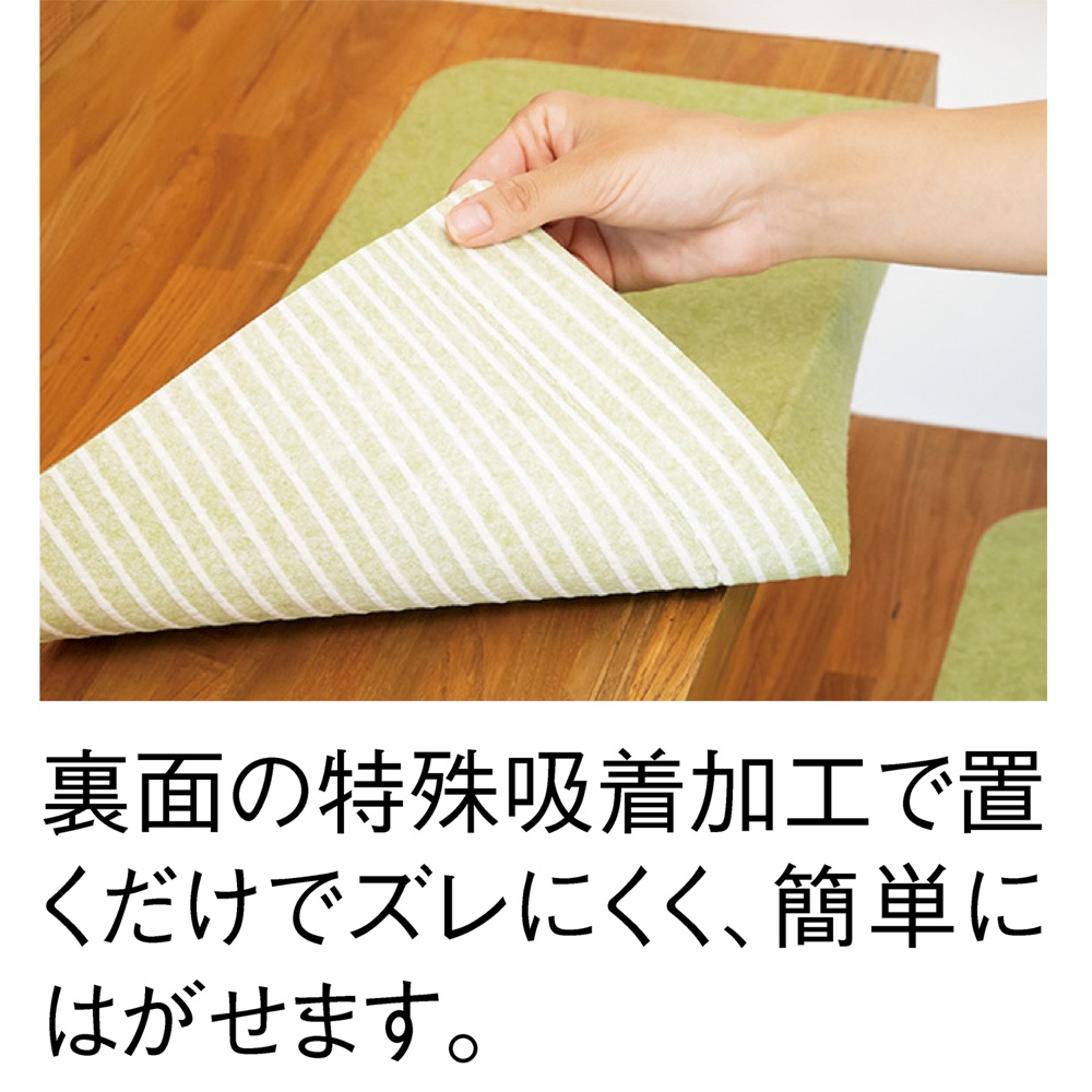 ズレにくいから、掃除機がけもスイスイ 独自の特殊素材と裏面の特殊吸着加工により、床に張りついてしっかり安定。掃除機の吸引力にも負けない吸着力を発揮して、掃除機をかけてもはがれません。