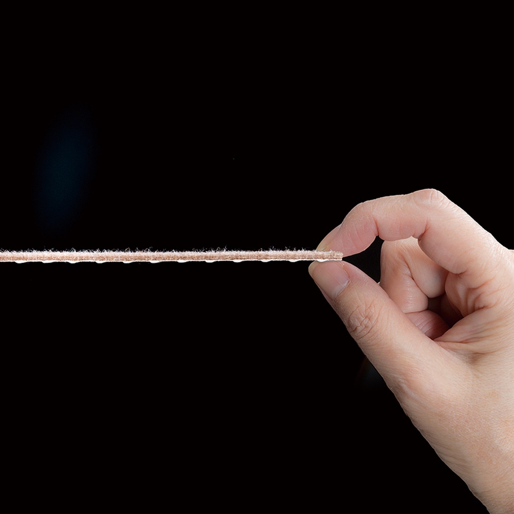 上から力が加わると、目に見えない気孔(気泡)の空気が抜けて真空状態になり、吸着面が吸盤のようになる仕組みだから、テープの様にべたべたせず、跡が残りにくい。