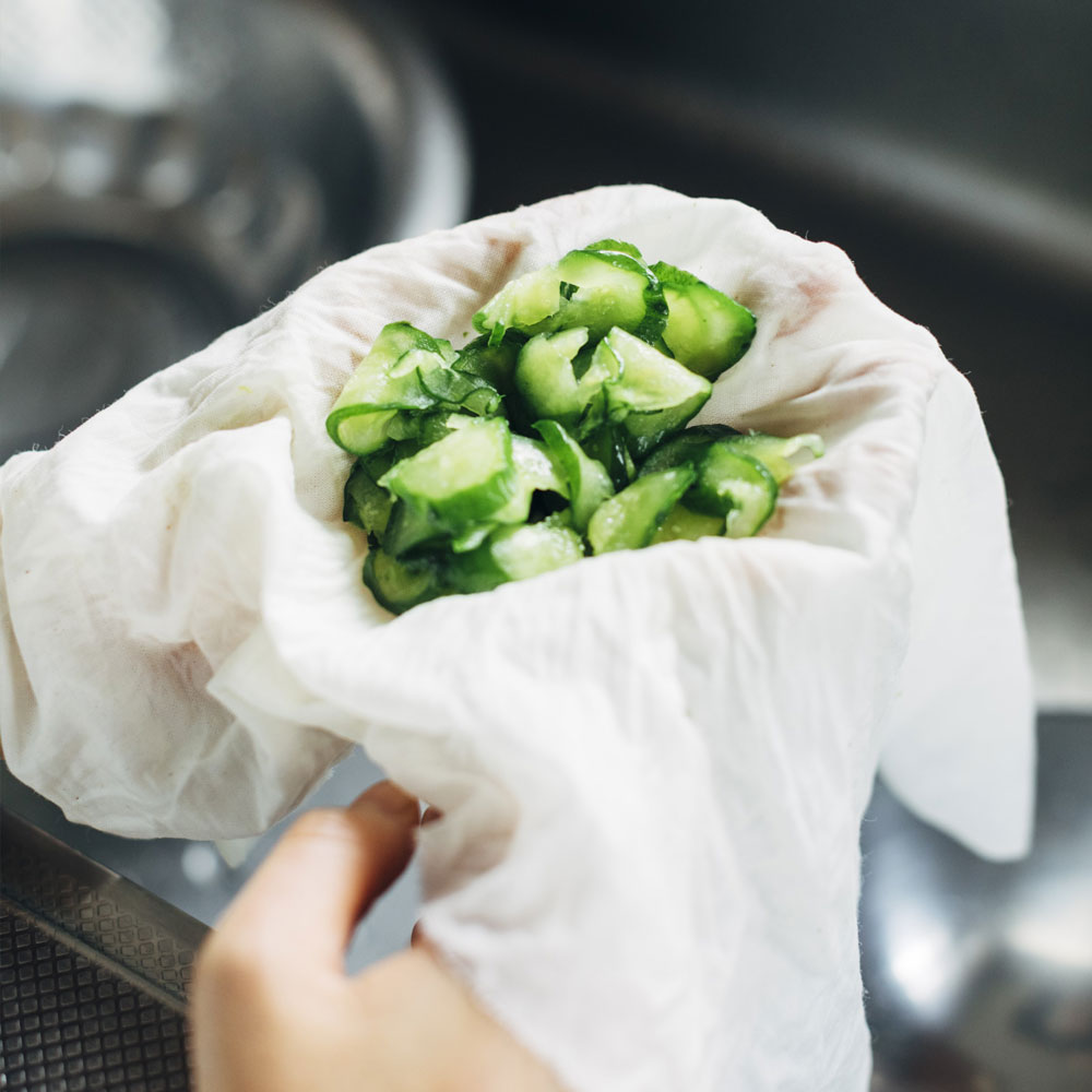 さらしなら破れることが無いので、野菜の水分をしっかり切ることができます。