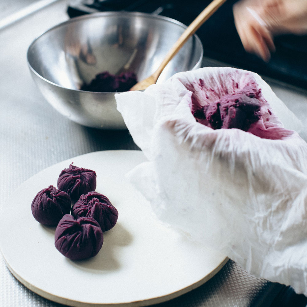 野菜も晒を使って絞ると、きっちり野菜の水気がとれて味がクリアになります。