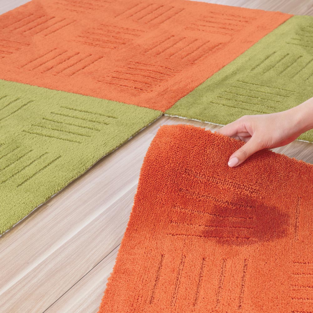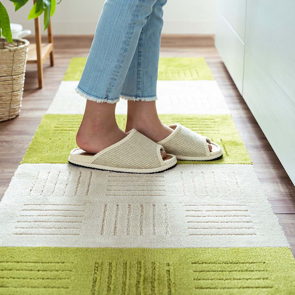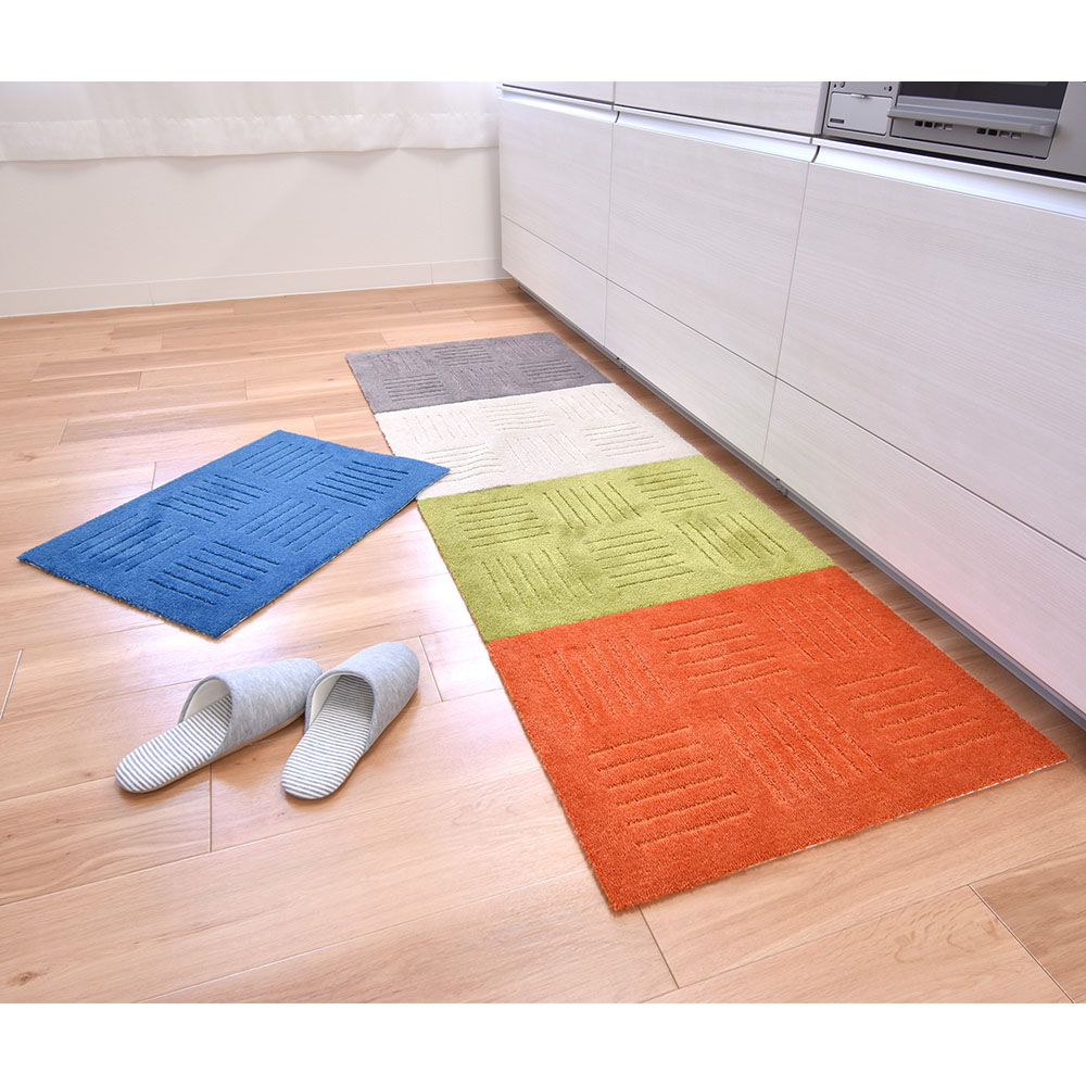(写真は、(オ)グレー2枚と (カ)ブルー2枚を使用) 1列に繋げてキッチンマットや廊下敷きに。