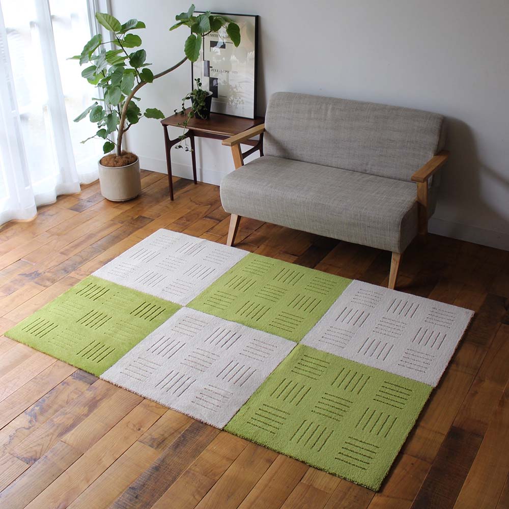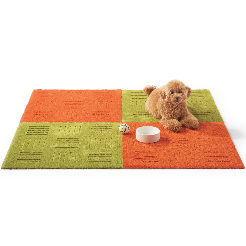 (写真は、(ウ)グリーン2枚と (エ)オレンジ2枚を使用) ズレにくく、汚れたら外して洗えるので、ペット用スペースにもおすすめ。