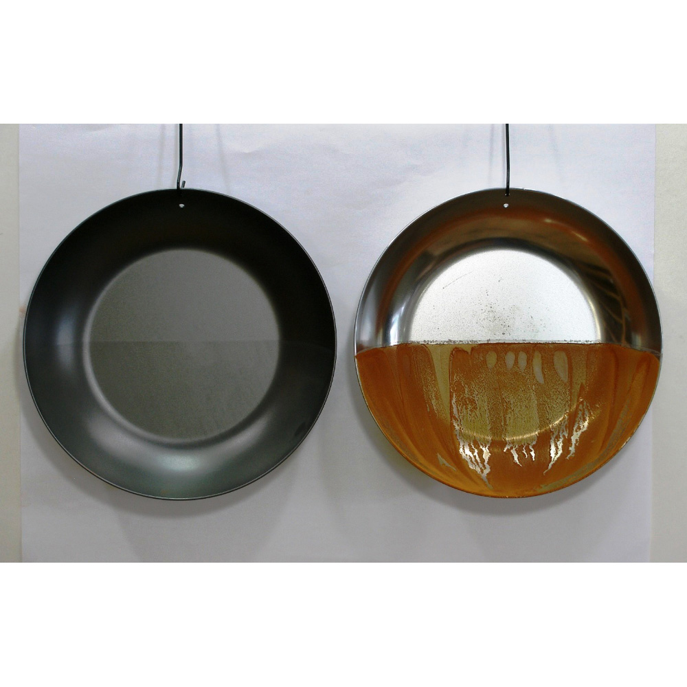 左が本品。特殊熱処理による表面の「窒化鉄層+酸化鉄層」のおかげで、鉄の弱点である錆びを防ぎます