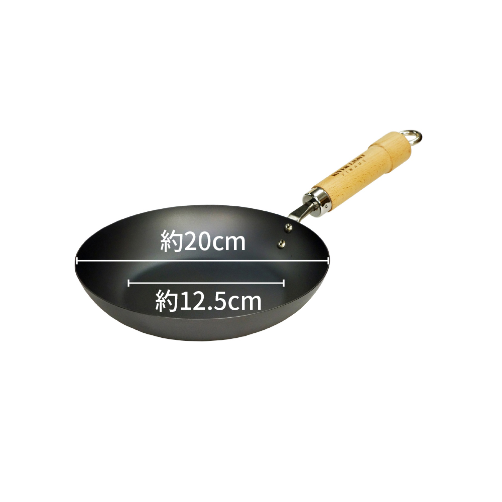 フライパン20cm=外径20cm、底面直径12.5cm、全長36.9cm、深さ3.8cm、重さ560g