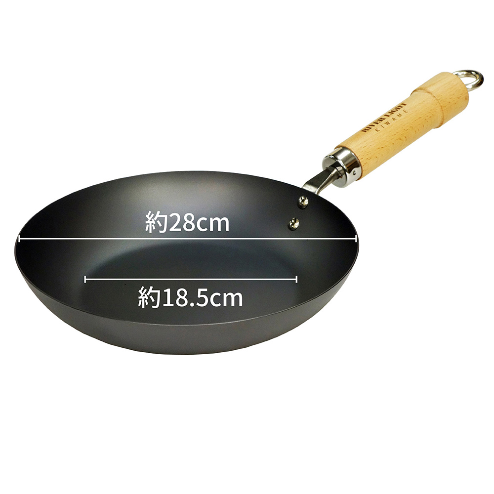フライパン28cm=外径28cm、底面直径18.5cm、全長48cm、深さ5.5cm、重さ1300g
