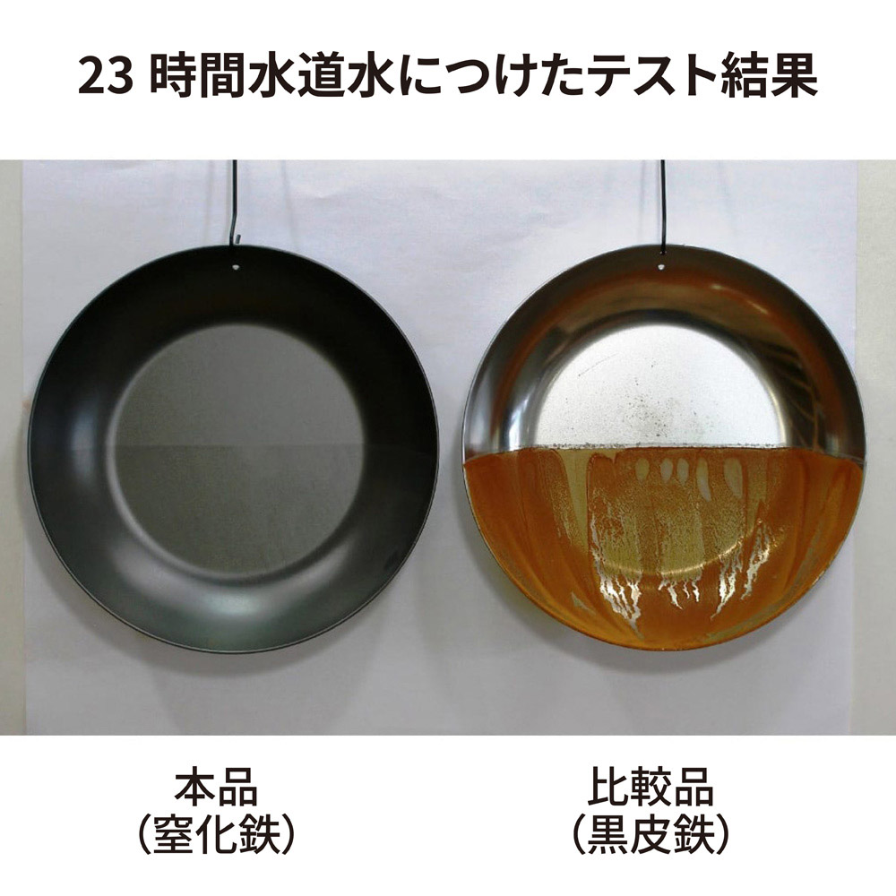 特殊熱処理による加工を施しているのでサビにくく、使い始めの「から焼き」や洗い終わった後の「油引き」が不要。お手入れ簡単なので、鉄フライパン初心者も安心して使えます。調理するたびに自然に鉄分摂取が期待できるのも鉄鍋の長所。健康を心地よくサポートします。鉄フライパン初心者にも、うれしい使い勝手を追求。「リバーライト」で目指せプロの味。「鉄鍋は扱いが難しそう」なんていう心配はいりません。特殊熱処理を施したこのフライパンならサビにくく、面倒なお手入れは不要。届いたその日からすぐに使えます。強火調理が可能なので、プロ顔負けの仕上がりをおうちで簡単に実現!炒め鍋は2サイズ。左から26cm、28cm。26cmのフライパンは一度に3?4人分を調理できるのでファミリー層におすすめ。28cmのフライパンは大人数の料理を作りたいときに便利です。ステーキは表面はカリッと、中はジューシーに焼き上げます。鉄フライパンは蓄熱性と放熱性が高く、一度温まると高温をキープ。食材を投入しても温度が下がりにくく、さらにその熱をたっぷりと食材に伝えるという特徴があり、お肉もおいしく焼き上げます。強火調理ができるので、パラパラ炒飯があっという間に作れます。深さがあるので炒飯や野菜炒めに活躍。たっぷりの熱量でご飯の水分を一気に飛ばせば、お店で食べるようなパラパラ炒飯が完成します。面倒なお手入れ不要だから初心者でも扱いやすい!基本のお手入れは、調理後フライパンが温かいうちにたわしで洗って水気を拭くだけ。油を塗る必要はありません。タフなので、こびり付いた汚れはたわしでゴシゴシこすってもOK。特殊熱処理「窒化加工」により鉄の弱点であるサビを防ぎます。左が本品。右は窒化加工をしていないフライパン。窒化加工により表面に「窒化鉄層+酸化鉄層」が作られ、新品なのに使い込まれた鉄フライパンの状態を再現。フライパンの半分を23時間水道水につけたテストでも、窒化加工を施したリバーライトにはサビが発生しませんでした。鉄フライパンは、たくさん使うほど、使いやすく育ちます。こちらは15年間使い込んだフライパン。鉄フライパンはコーティング加工していないので劣化しません。むしろ使えば使うほど、フライパン表面に油がなじんでこびり付きにくく、サビにくく、より使いやすく変化していきます。素材にまでこだわった質の高い調理道具で、健康によく、おいしい料理を。「良い道具は、使い手の生活の質を向上させ、人生をより豊かにするきっかけにもなり得るものだ。そういう道具を作っていこう。」それがリバーライトの仕事です。シリーズでそろえれば、用途に合わせて使い分けることができます。上から28cmの炒め鍋、26cmのフライパン、卵焼きフライパン。
