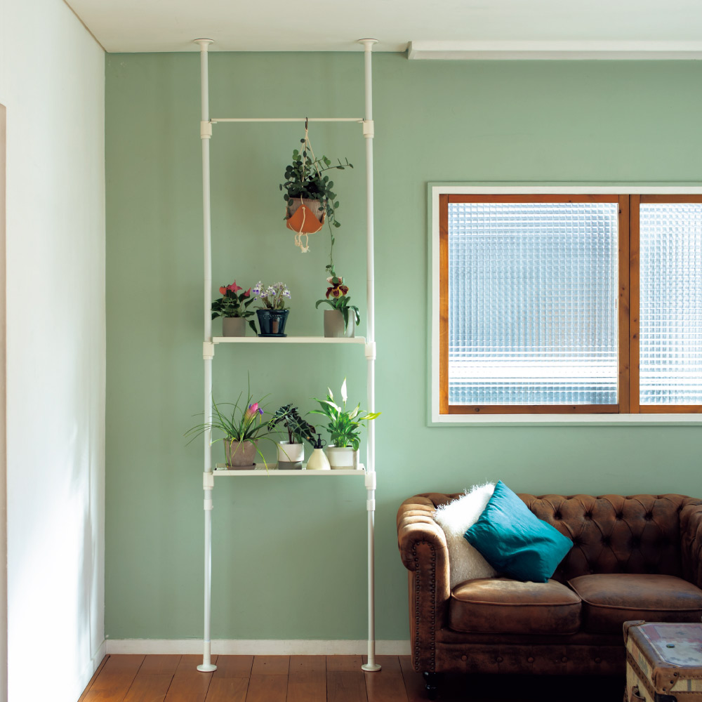掛けて置いて、涼しげボタニカル空間を演出お部屋でグリーンを楽しみたい!でも吊り下げる場所がないし壁に穴は開けたくない!という願いに応えたアイテム。省スペースで吊り鉢を飾れ、自分好みにカスタマイズできます。