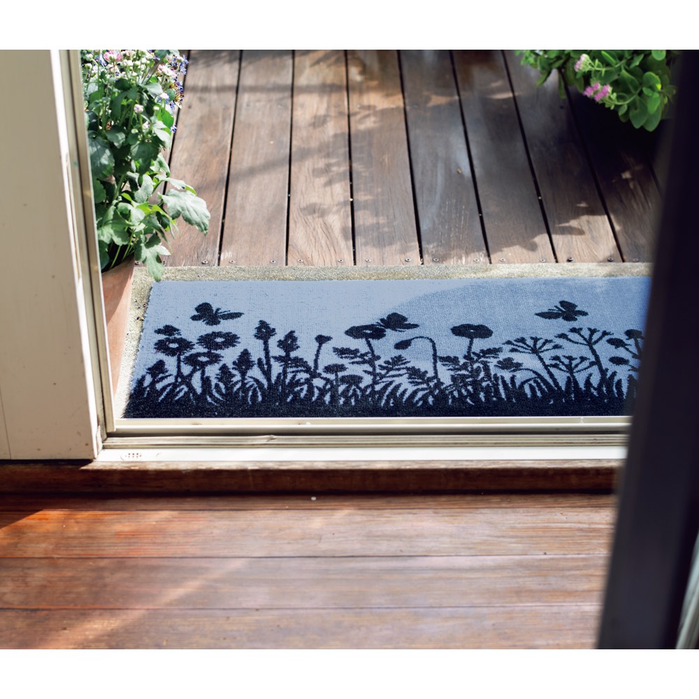 草原に野の花が咲き広がるメドウをイメージしたインテリア感覚のマット。吉谷さんが柄から色に至るまで自ら監修し、ナチュラリスティックな野原の原風景をこだわってデザインした玄関マットです。◆厚み6mmの薄型ですが、裏面の専用配合ゴムが床面を捉え、ずれる心配はありません。◆どんな庭にも似合う深みのあるグリーンとモダンなグレーの2色展開。お部屋前に広がるテラスやデッキのアクセントとして大きなサイズを使うと見映えがするほか、数枚つなげて使用することで大草原のような風景も表現できます♪