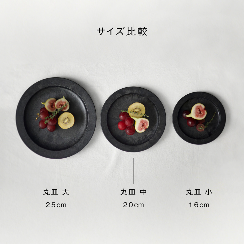サイズ比較。左がこちらで販売している大サイズのブラック、右はARASで人気の大皿ウェーブ皿です。