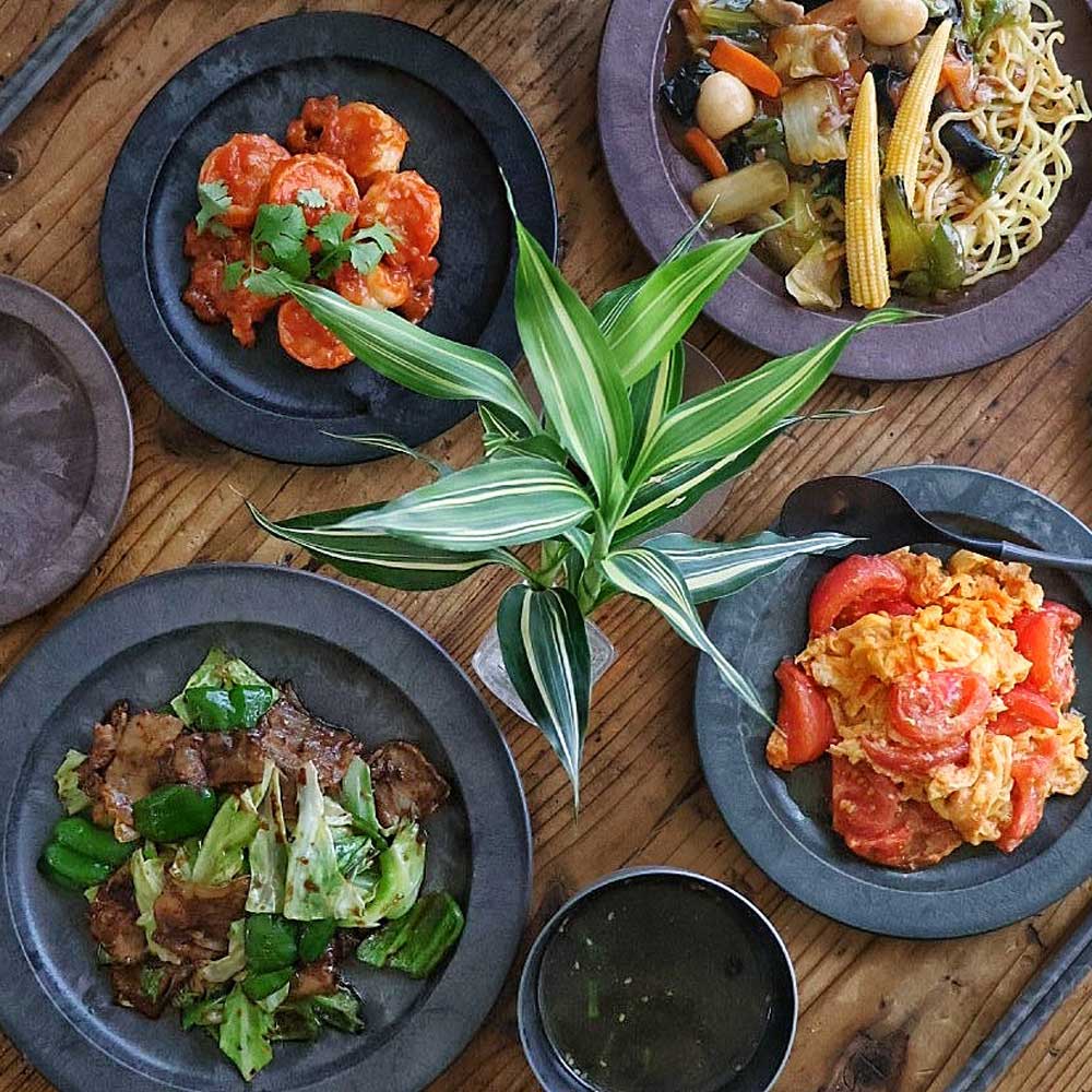 麺:大レッドブラウン・キャベツ:大グレー エビチリ:中ブラック・卵:カーキ