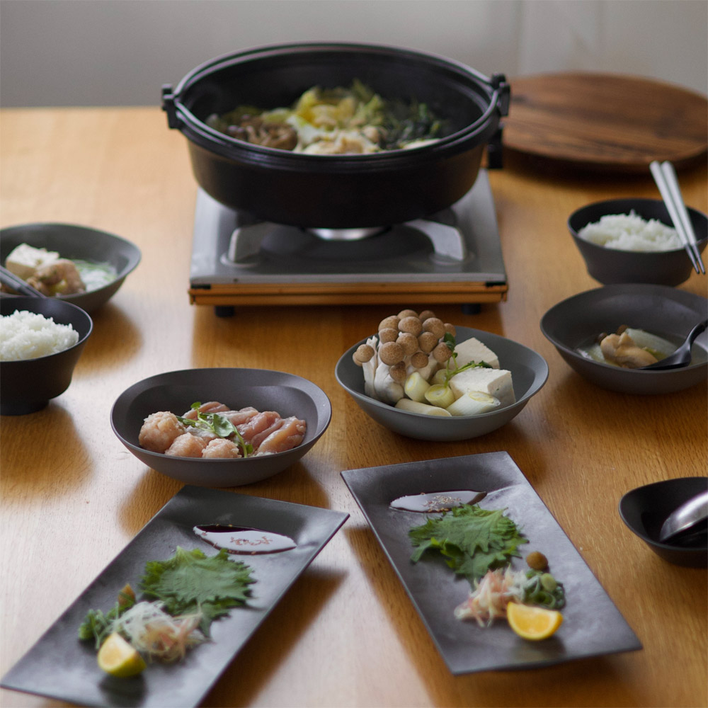 ア)ブラック2枚組 右端タレを受け止める、ゆるやかな「たまり」があります。醤油やタレを入れるのに便利です。