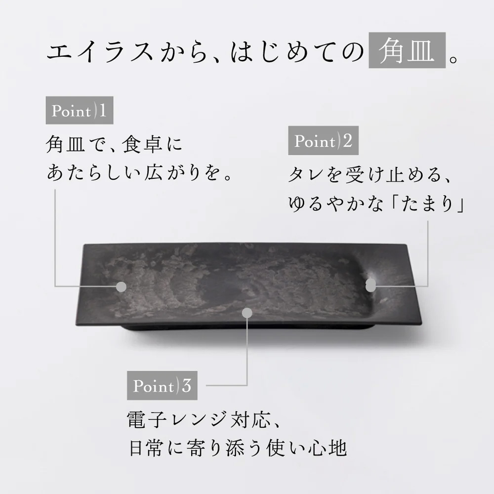 ARASから、はじめての角皿が登場。電子レンジ対応のヒートコレクションです。焼き魚にお刺身、餃子など幅広い料理にご使用できます。同色2枚組でお届けします。待望の角皿の新登場!食卓の隙間を埋め、 焼き魚からおつまみまで幅広いシーンに合うかたち。食卓にあたらしい広がりを。タレを受け止める、ゆるやかな「たまり」。 三日月のようにゆるやかにくぼんだたまりには、醤油やタレを。電子レンジ・食洗機対応。毎日の食卓になじむ器です。角皿たまりのこだわりポイント1)角皿で、食卓にあたらしい広がりを。食卓の隙間を埋め、焼き魚からおつまみ、お寿司など幅広いシーンに合うかたち。2)タレを受け止める。ゆるやかな「たまり」三日月のようにゆるやかにくぼんだたまりには、醤油やタレを。お刺身の醤油や餃子や焼売のタレなど入れるのに便利です。3)電子レンジ対応。(700Wまで)日常に寄り添う使い心地 電子レンジ・食洗器対応。毎日の食卓になじむ器です。4)他のシリーズと同じく生涯破損保証付きです!