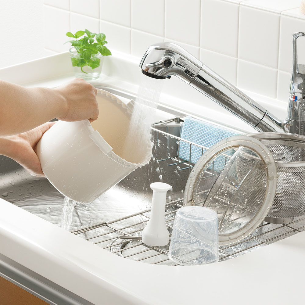 精米かご・ぬかボックス同時取り出し構造でぬかこぼれの心配なし