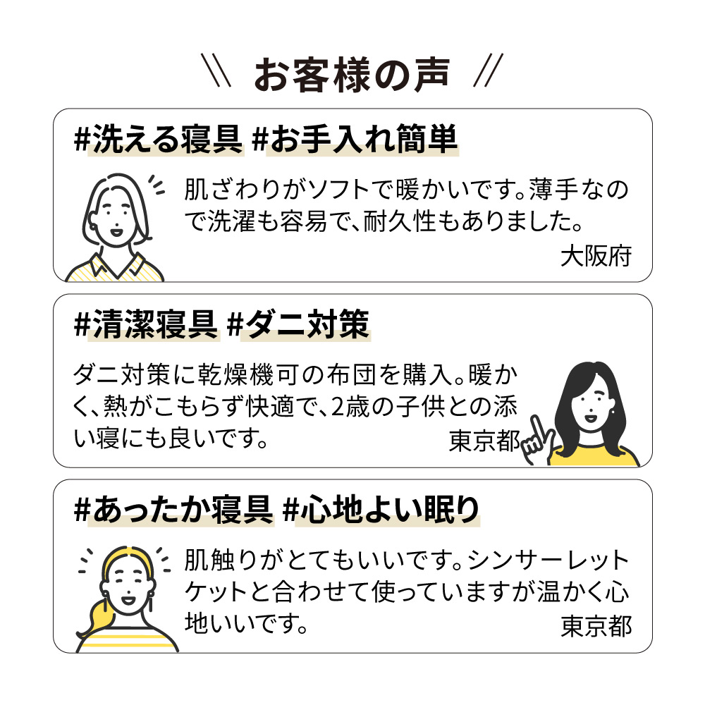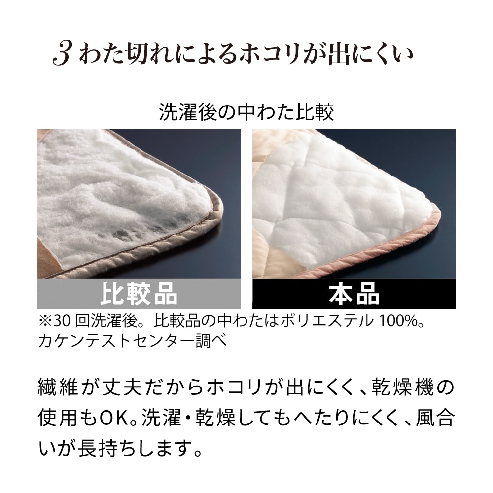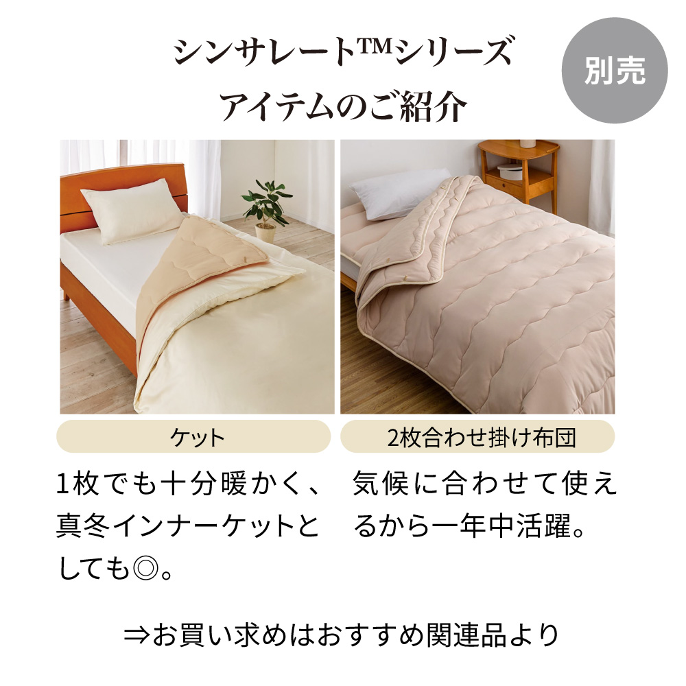 同シリーズの肌掛けケットや二枚合わせ布団との合わせ使いで、全身ポカポカに。※お届けは敷きパッドです。ケットは別品番になります。