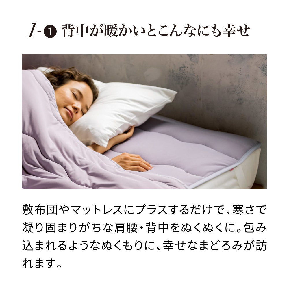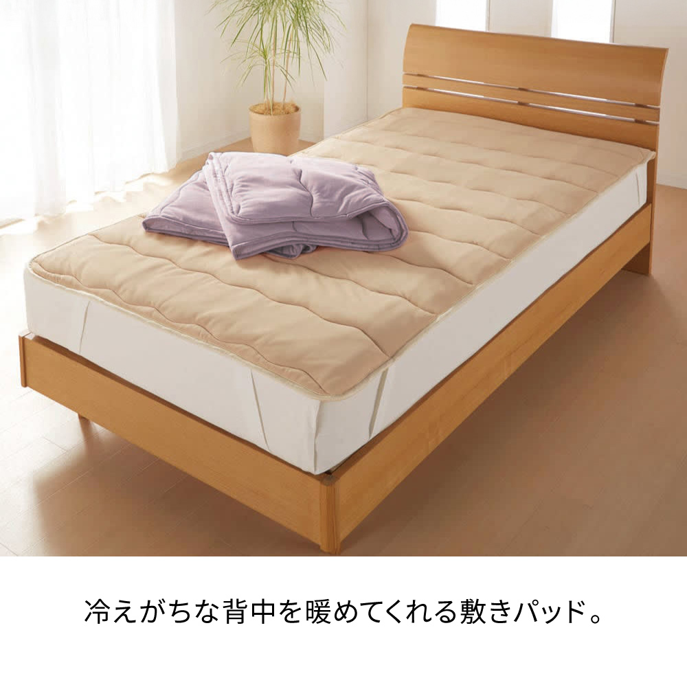 同シリーズの肌掛けケットや二枚合わせ布団との合わせ使いで、全身ポカポカに。※お届けは敷きパッドです。ケットは別品番になります。