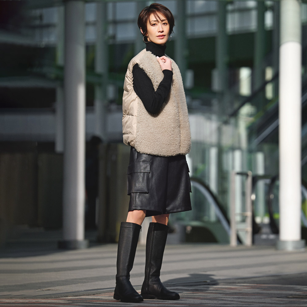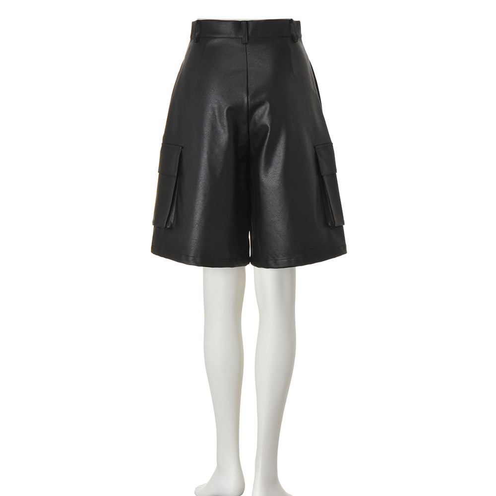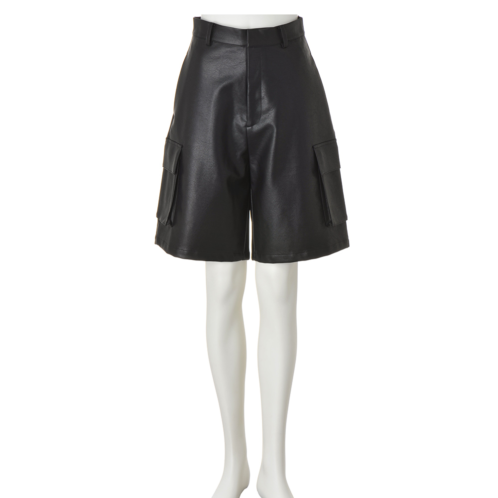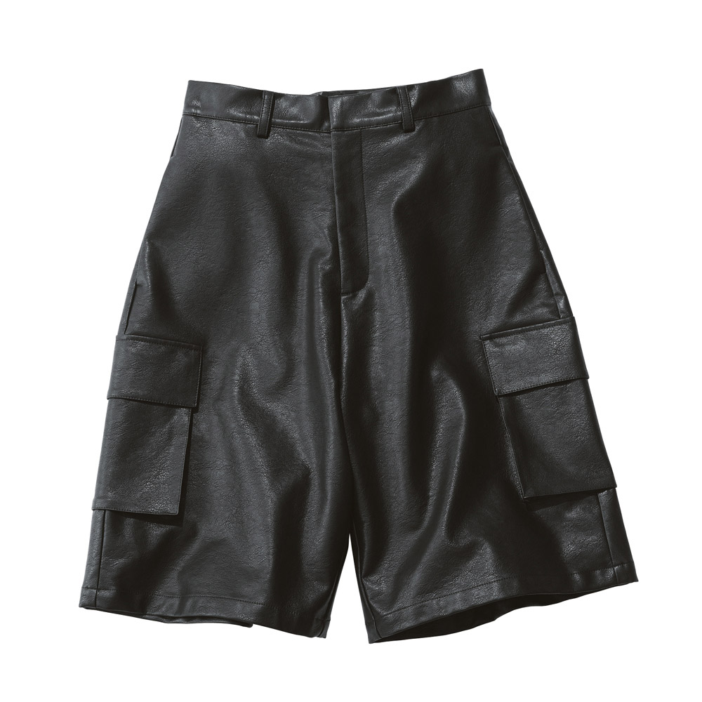 日常のお洒落に今どきのテイストをON街で着るのが似合う大人のヘルシーカジュアル毎日のスタイリングに欠かせない、程よくカジュアルで、どこかスポーティな旬の服。着映えはもちろん、親近感や好感度も手に入る、冬のマストハブをご用意しました。捻りのある素材使いで大人カジュアルをアップデートリアルレザーを思わせるルックスながら、実は軽くて柔らかく、扱いやすいレザー調素材を使用。裾広がりのシルエットや立体的なカーゴポケット、ひざに届くくらいの長め丈で、大人がデイリーにはけるショートパンツに仕上げました。このバランスが、冬の装いを軽快に演出します。