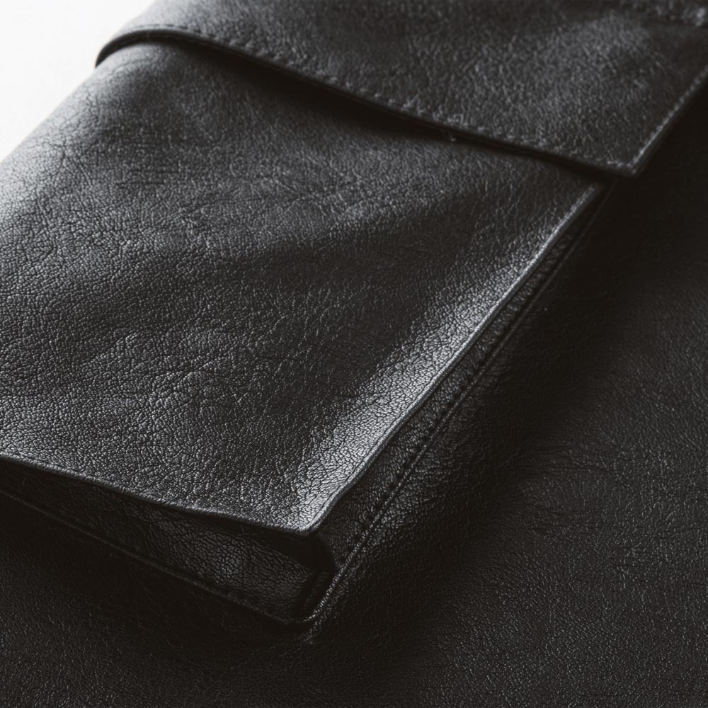 伸びやかなレザー調素材は、快適な着心地はもちろん、お手入れのしやすさも長所。