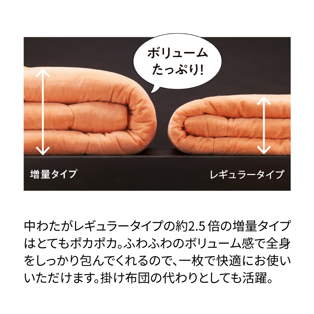 わずか5分で速暖!シリーズお客様満足度90%以上、リピ買いが止まらないメガヒット・ロングセラーの暖か毛布。ボリュームたっぷりの増量タイプです。