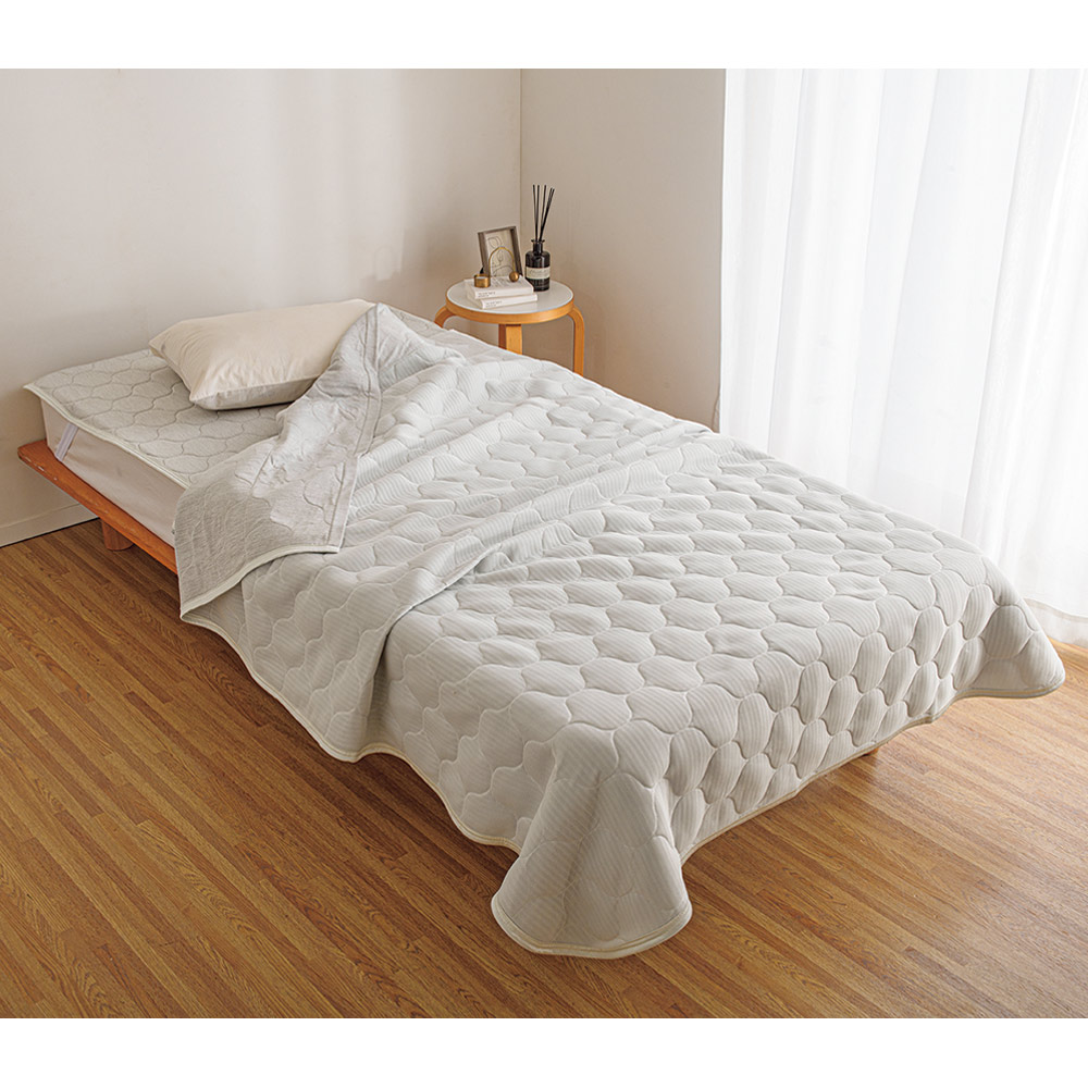 冷感・除湿力・通気性を持つ機能素材の3層構造。お使いの寝具に1枚プラスするだけで、夏の眠りがぐんと涼しく快適に!