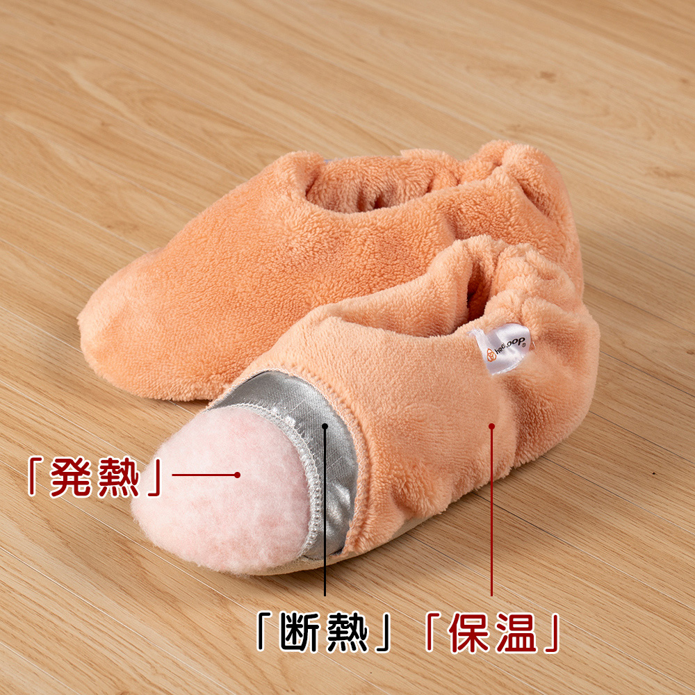 圧倒的な暖かさから、ディノス冬の寝具13年連続売上No.1※ヒートループシリーズのルームシューズ!発熱×断熱×保温のヒートループ構造が足をすっぽり包み込んで暖めてくれる!※2012〜2024年度10月〜3月 シリーズ累計販売数(従来品を含む)においてヒートループ(R)で作った、ぬくぬくルームシューズ電気のいらない発熱寝具として大人気のヒートループ(R)がの暖かさを足元にも!ふんわりとした肌ざわりととびきりの暖かさで足全体をすっぽり包み込んで、履いている間中ぽかぽか。節電対策にも◎のルームシューズです。暖かさが止まらないヒートループ(R)構造大人気のあったか寝具・ヒートループ(R)と同素材を使用。「発熱わた」「アルミシート」「発熱生地」を組み合わせることで、「発熱」「断熱」「保温」の3つのあったか効果が繰り返される独自の構造です。【発熱】ミリオンホット(R)DXわたによる驚きの発熱パワー「ミリオンホット(R)DXわた」は湿気を吸って発熱するので、暖かいだけでなく中がムレにくく。さらに驚きの発熱パワーによりすぐポカポカに。【断熱】暖かさを閉じ込める、やわらか遮熱アルミ生地内側に遮熱効果のある遮熱アルミ生地を使用し、厳しい冷え込みから冷気をブロック。やわらかなアルミシートを採用することで肌沿いも◎。1足丸ごとヒートループ(R)構造「発熱」「断熱」「保温」を繰り返すヒートループ(R)構造で、ムレにくい快適な暖かさに包まれます。やわらかくなめらかなマイクロファイバーが足にやさしく、なおかつ芯材入りのしっかりとした履き心地です。裏面は布張りで足音静か底面は反発力の高い中芯入りで、床の硬さや着地の衝撃を軽減して快適な歩き心地。裏面は布張りで滑りにくく、足音も静かです。かかとを倒して、脱ぎ履きしやすいスリッパとしてもお使いいただけます。洗濯機で洗えて清潔に保てます。3色をご用意。