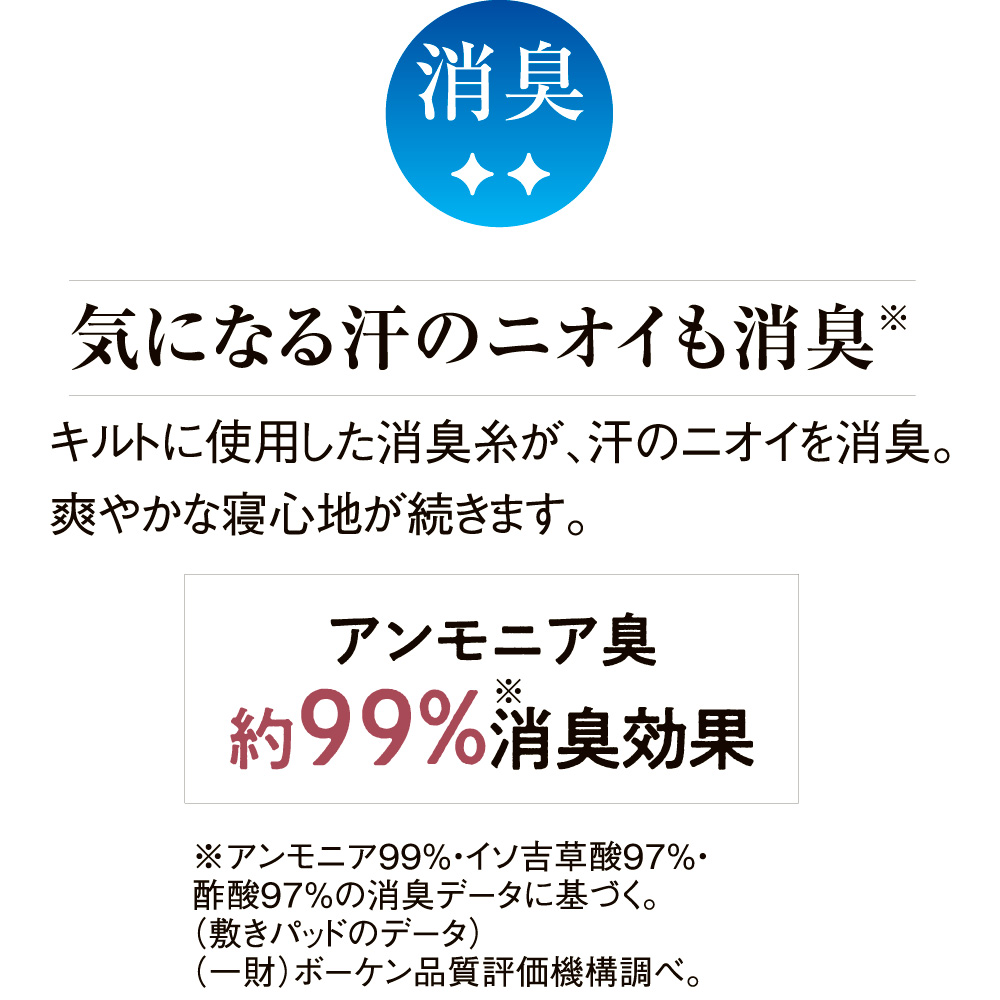 キルトに使用した消臭糸が、汗のニオイを消臭。爽やかな寝心地が続きます。