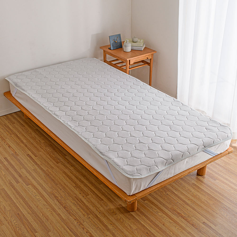 冷感・除湿力・通気性を持つ機能素材の3層構造。お使いの寝具に1枚プラスするだけで、夏の眠りがぐんと涼しく快適に!